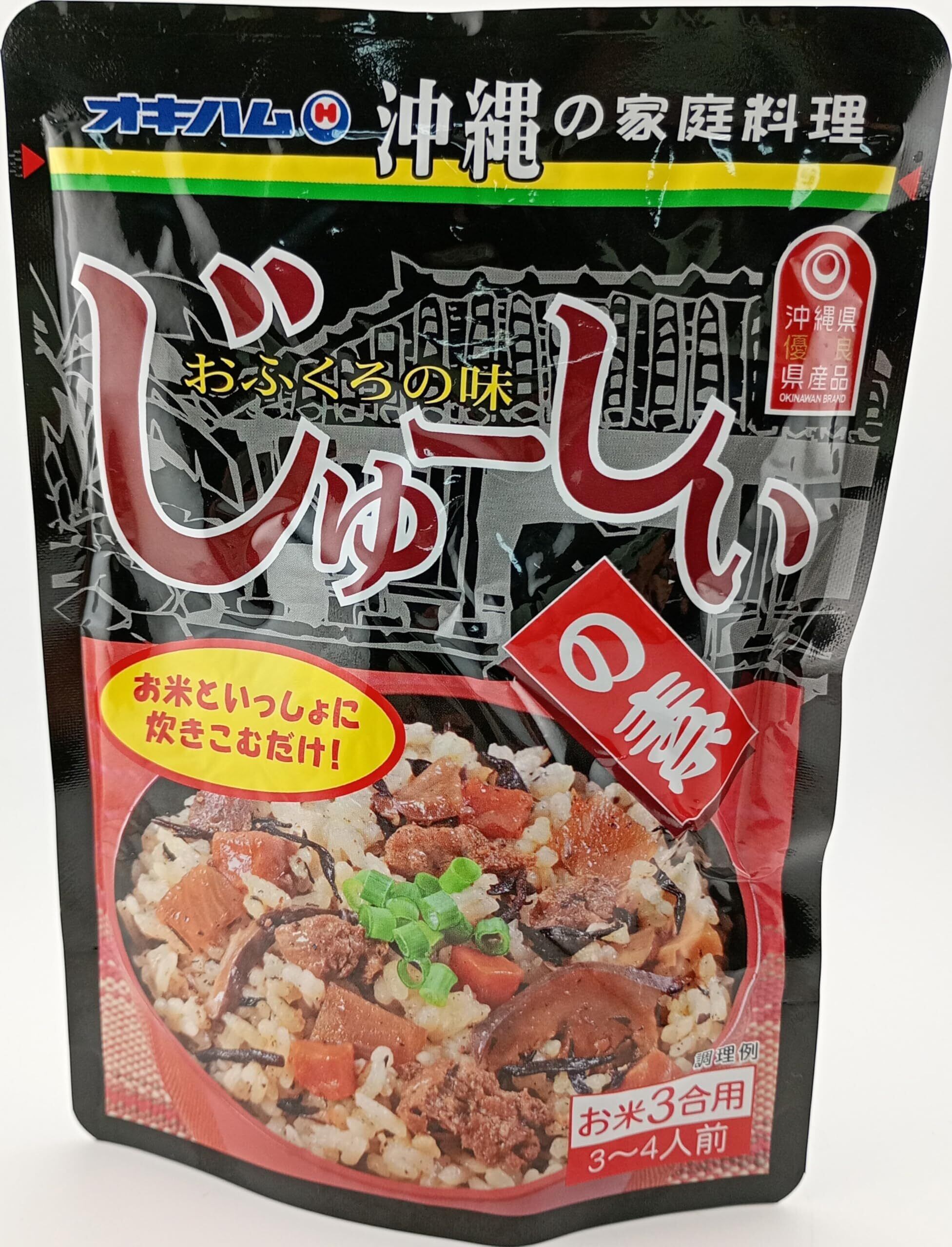 じゅーしぃとは野菜や豚肉が入った、沖縄風炊き込みご飯の素のことです。ご家庭で手軽に美味しい沖縄の味をお楽しみ頂くことができます。平成14年度沖縄県優良県産品推奨品です。