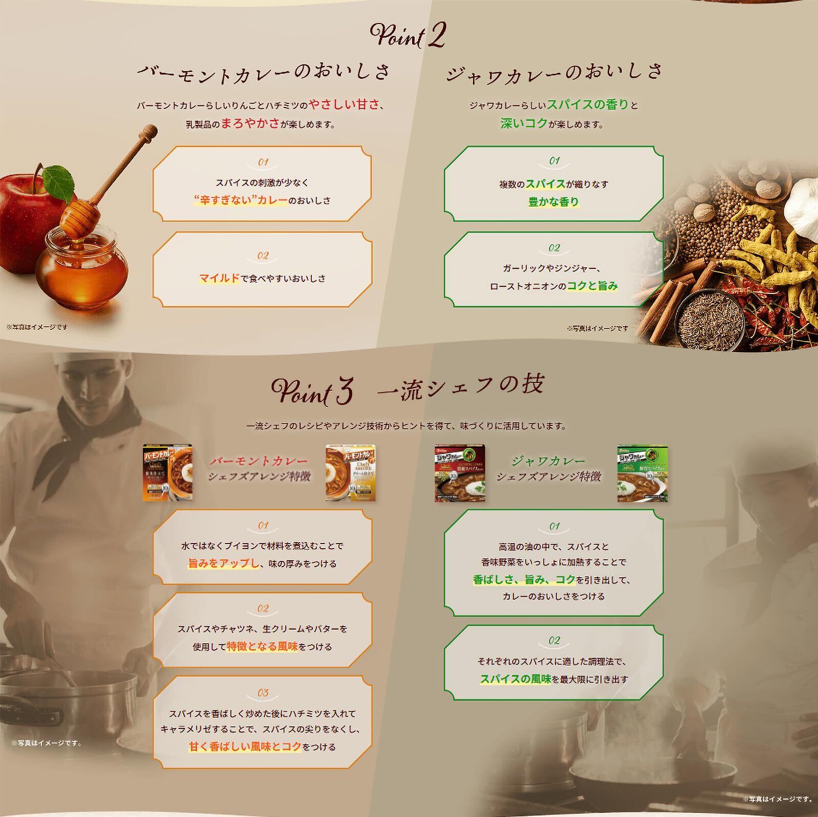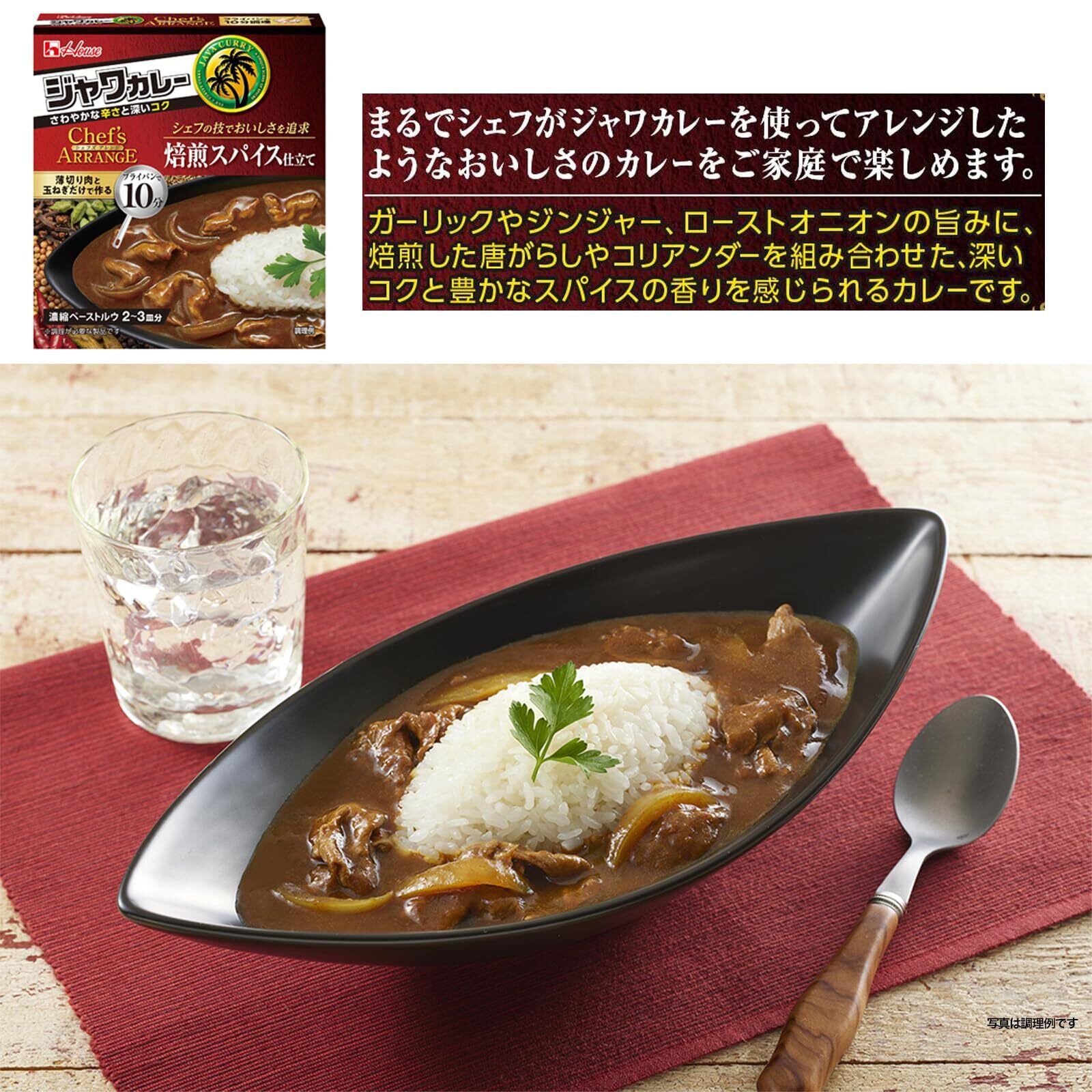 ・まるでシェフがジャワカレーを使ってアレンジしたようなおいしさのカレーをご家庭で楽しめます。・ガーリックやジンジャー、ローストオニオンの旨みに、焙煎した唐がらしやコリアンダーを組み合わせた、深いコクと豊かなスパイスの香りを感じられるカレーです。・薄切り肉と玉ねぎを使って、フライパンで10分間調理するだけで完成します。・一度の食事で食べきれる2~3皿分のカレーが作れます。・辛味順位は4です。