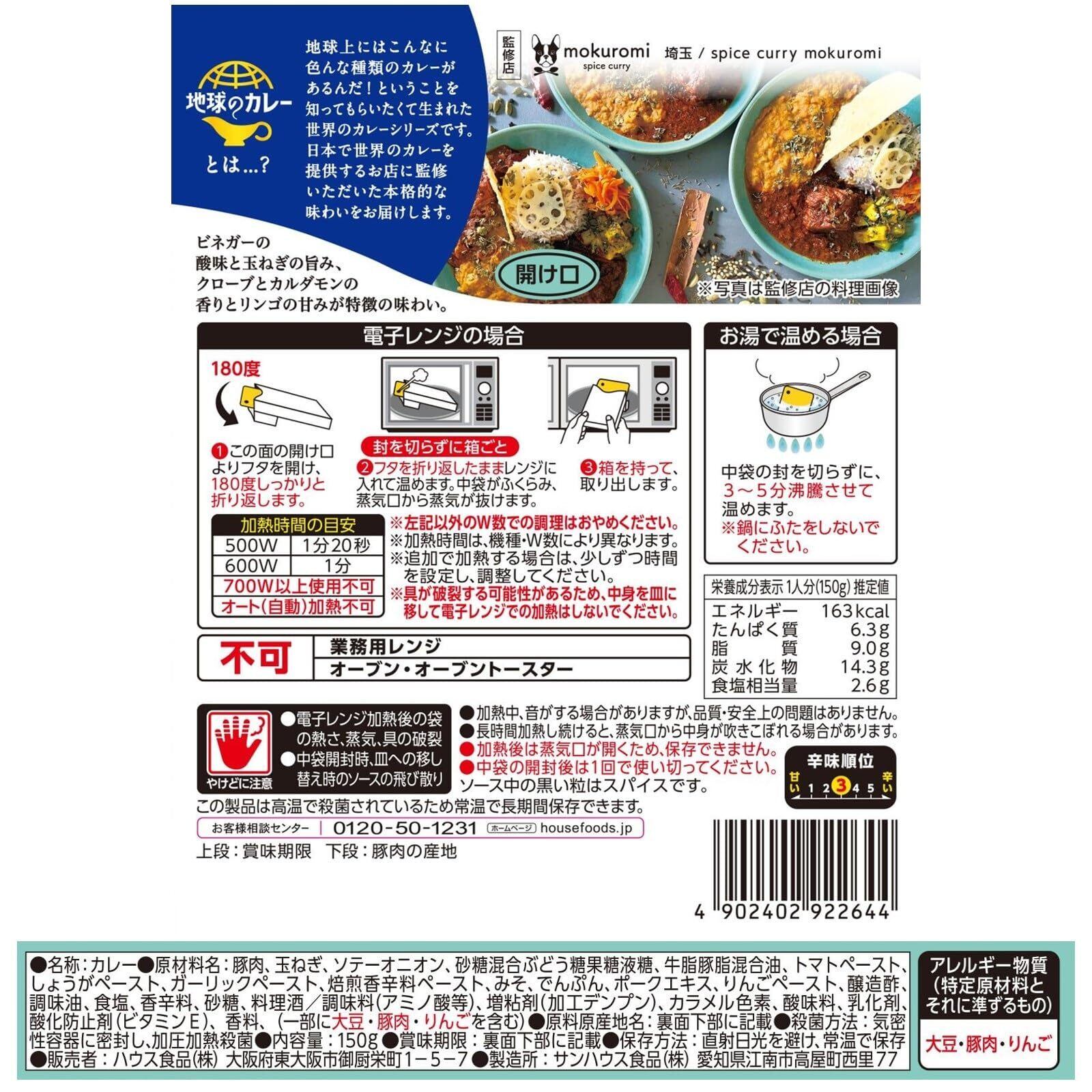 ハウス 地球のカレー ゴア風ポークビンダルー 150g ×5個 【レンジ調理対応】【レトルト食品】【非常食】【エスニック】