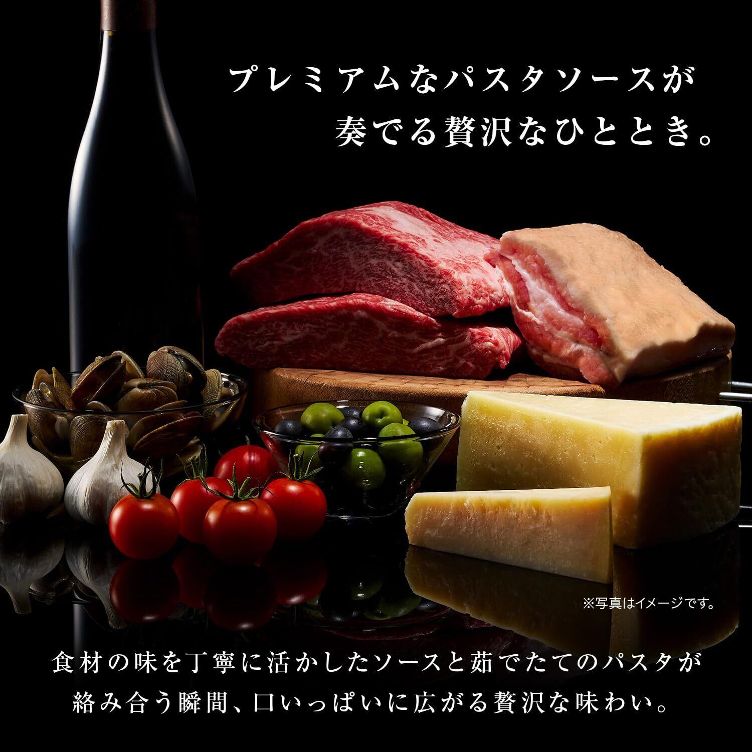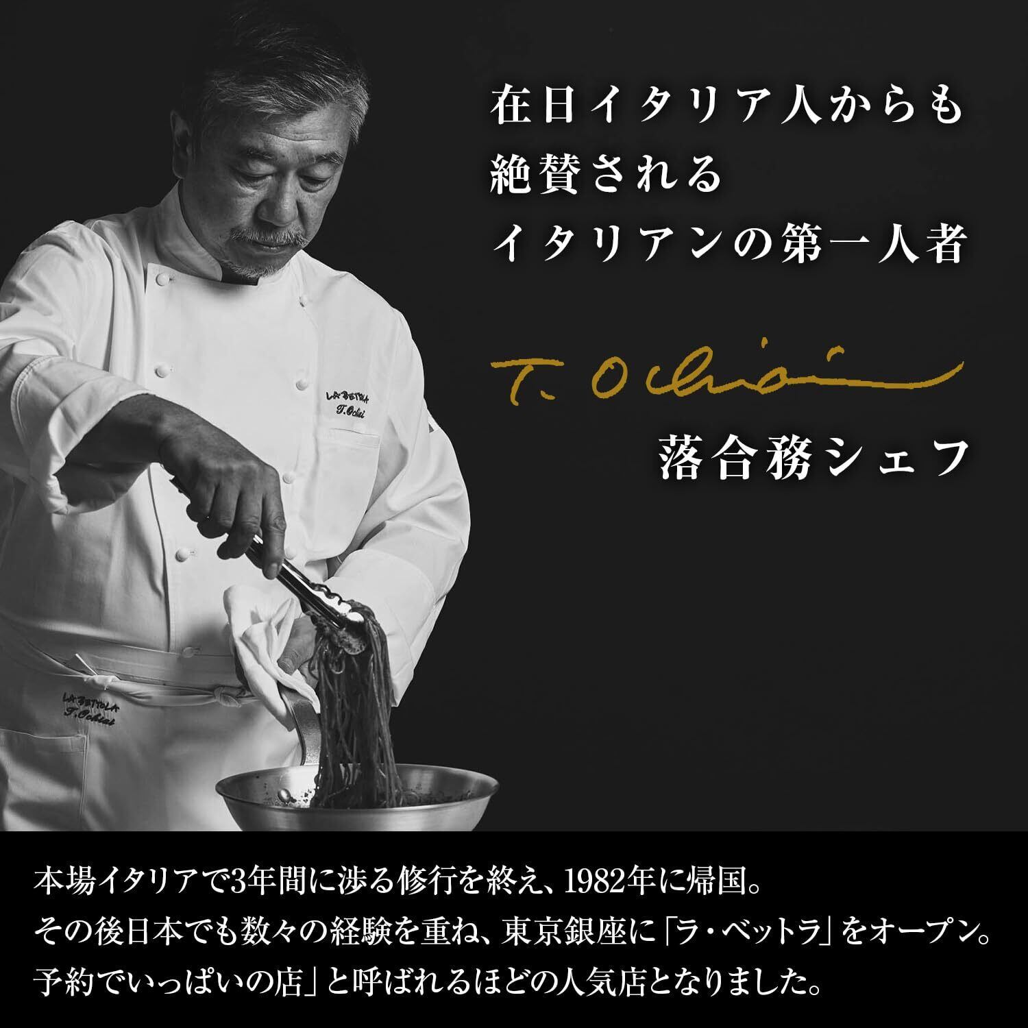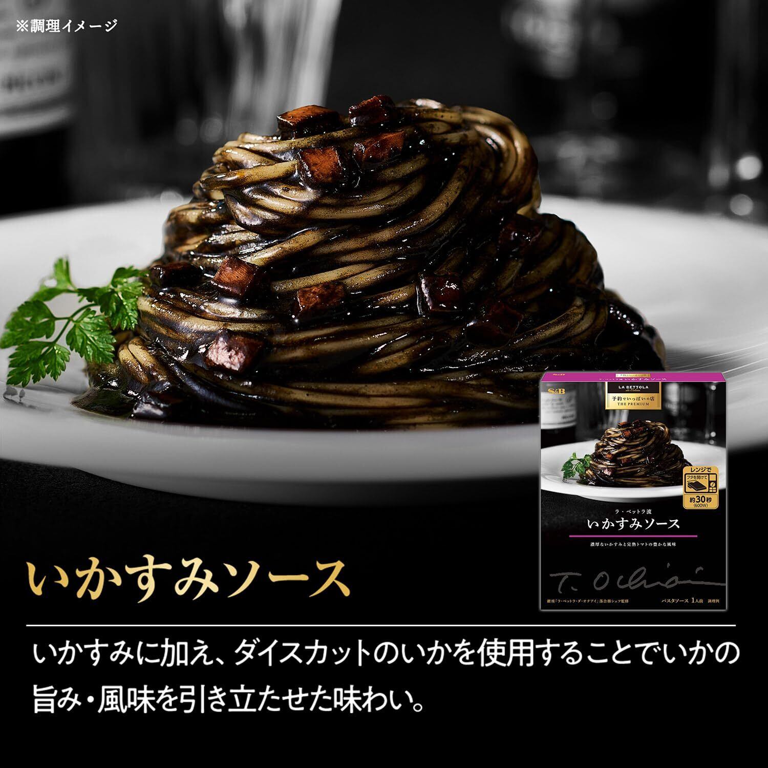 “予約でいっぱいの店”として有名な東京・銀座「ラ・ベットラ」落合務シェフ監修。いかすみに加え、ダイスカットのいかを使用することでいかの旨み・風味を引き立たせた味わい。