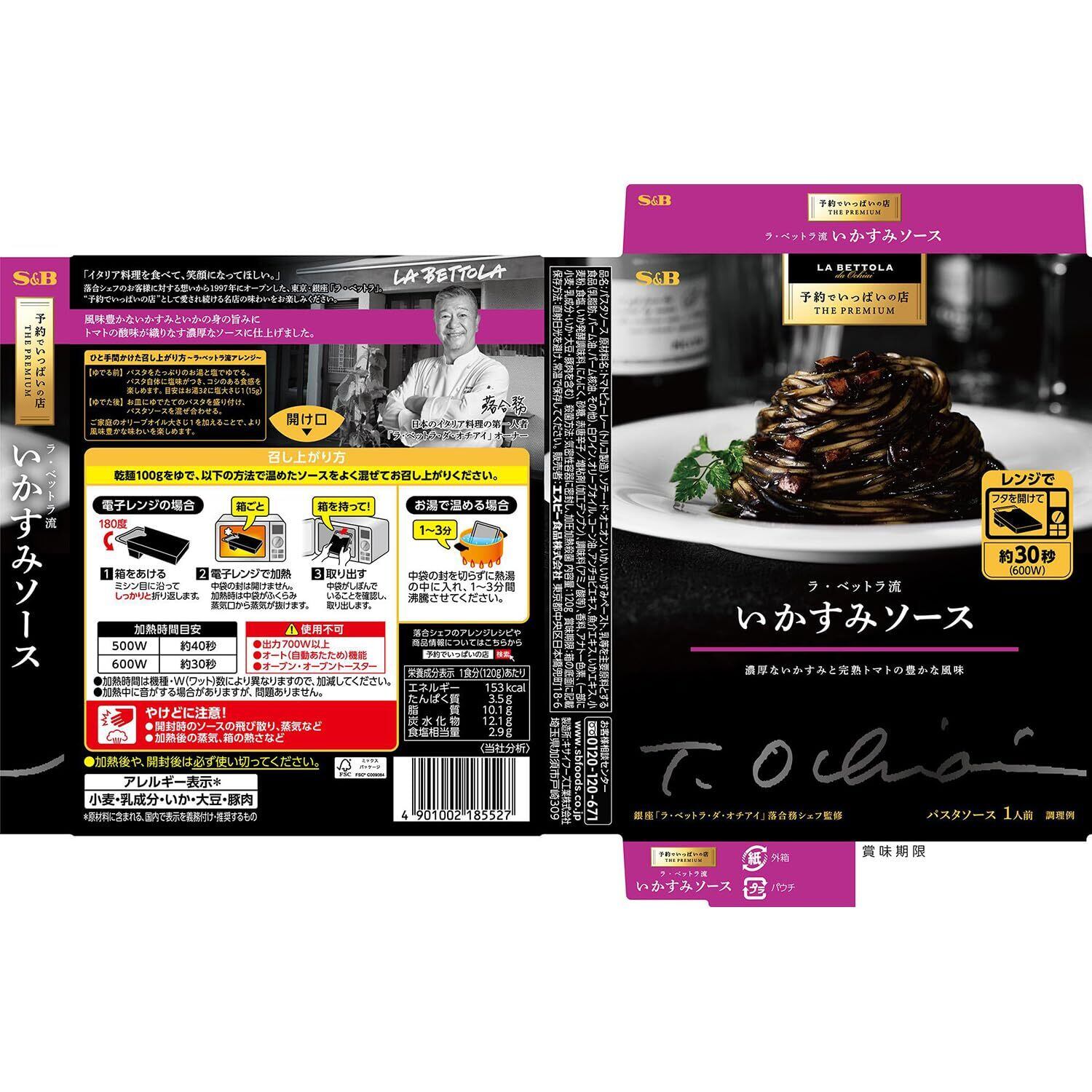 S&B エスビー食品 予約でいっぱいの店 THE PREMIUM ラ・ベットラ流いかすみソース 120g ×6個 【レンジ対応】
