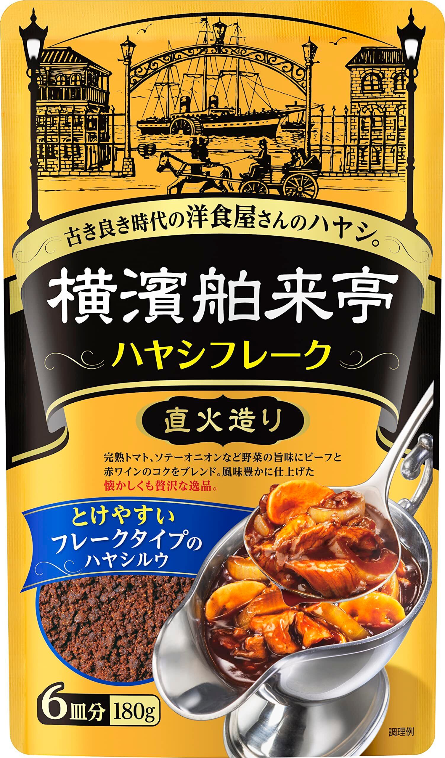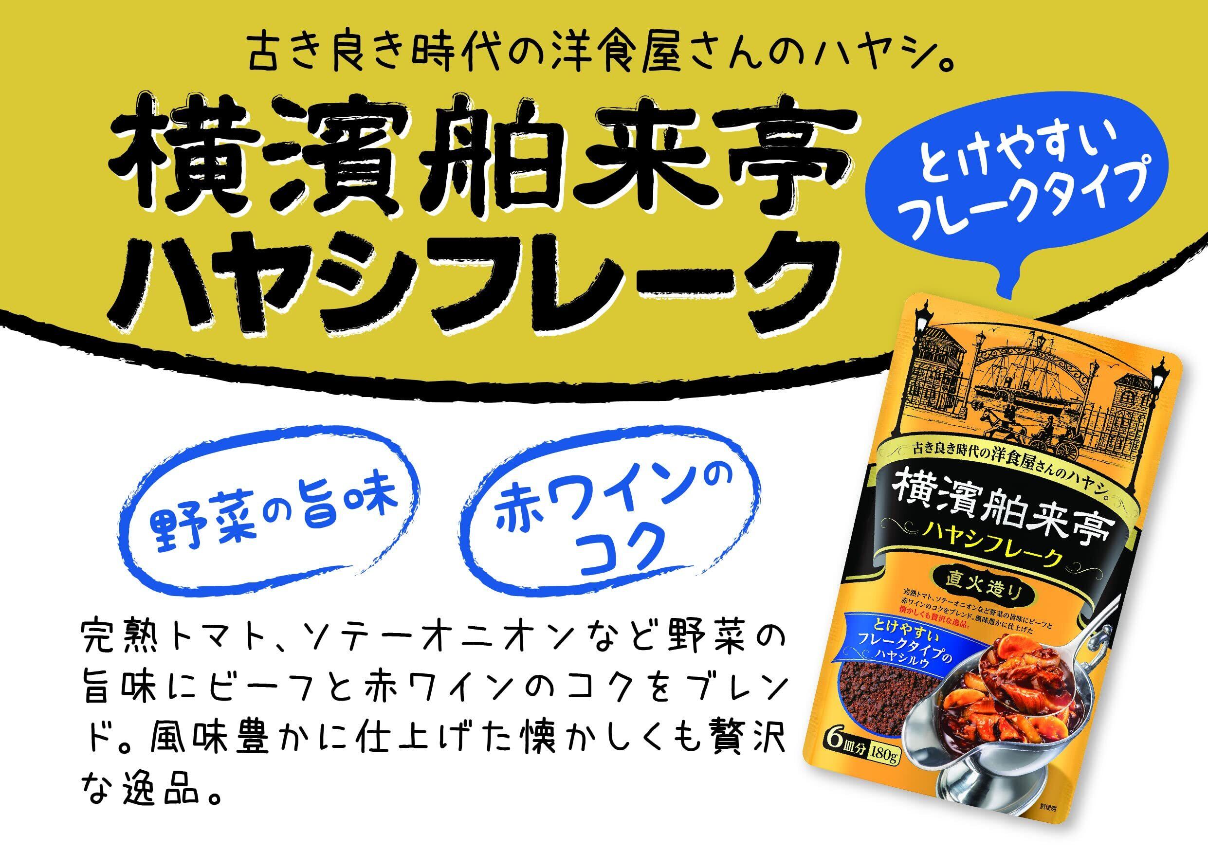 【溶けやすいフレーク】横濱舶来亭カレーフレークは、異国情緒あふれる西洋文化発祥の街、横濱で生まれた絶品欧風カレーをご家庭で手軽に楽しむことができる『フレークタイプのカレールウ』です。ルウを細かいフレーク状にすると、溶けやすく、短時間で具材 にまんべんなくおいしさが浸透し、粉のざらつき感がない、滑らかな口あたりに仕上がります。カレーピラフなども フライパン1つでさっと味が染み込み、コク深い味わいに。