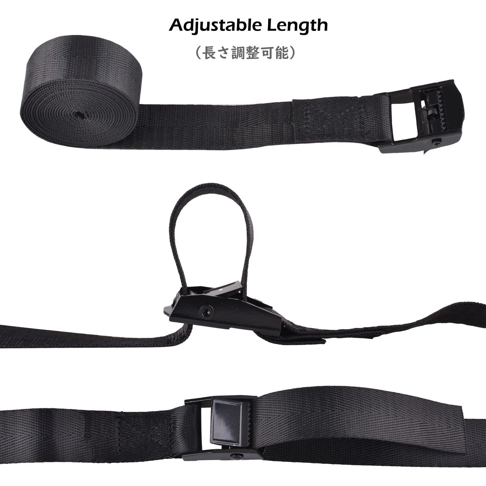 【調整可能】ワンタッチ式のラッシングベルトで、長さ調整も瞬時に行える、荷物やスーツケースに適用する