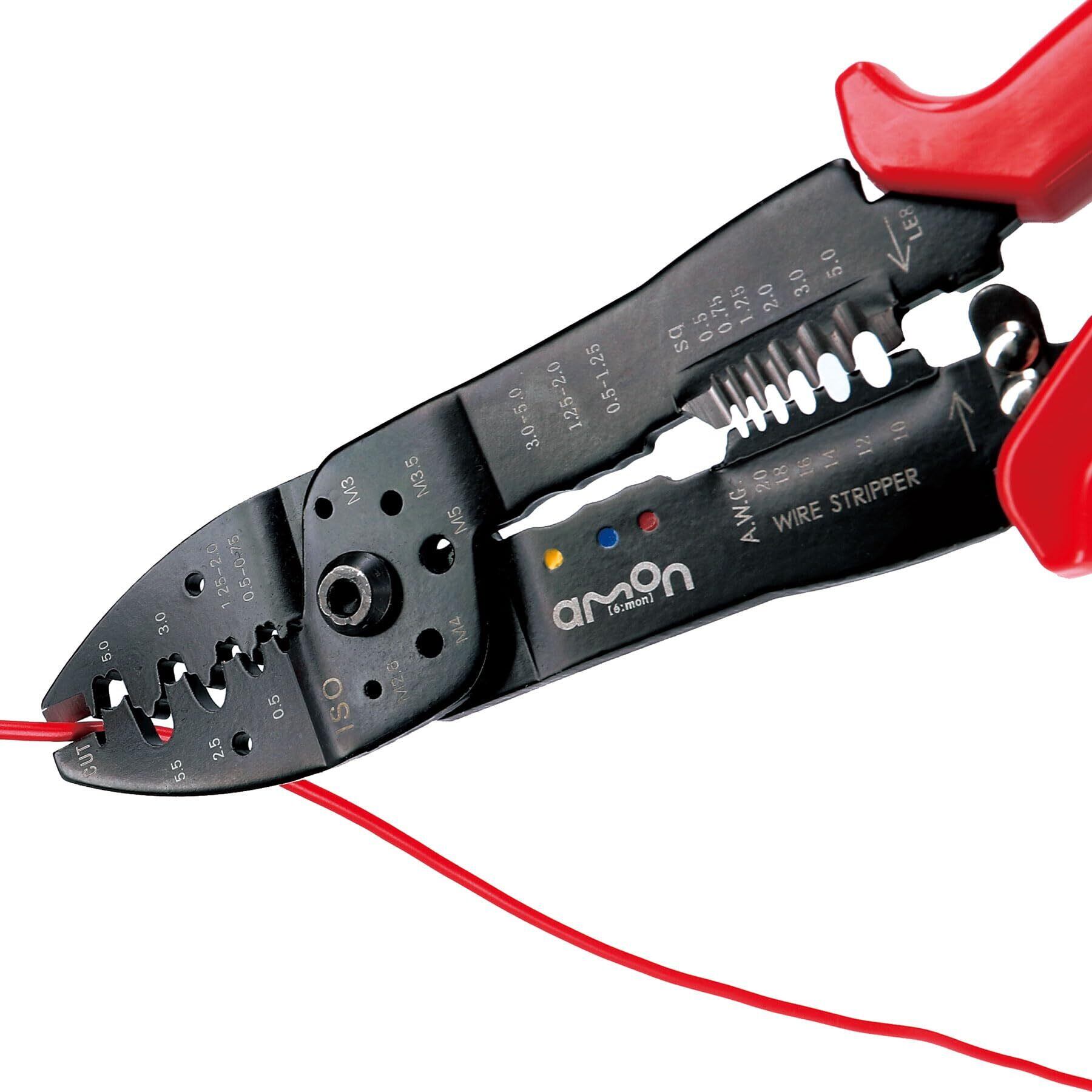 エーモン(amon) 電工ペンチ全長約255mm 配線コードの接続・分岐に ドラレコの電源取り出し 電装品の取り付け・配線作業 3500 レッド