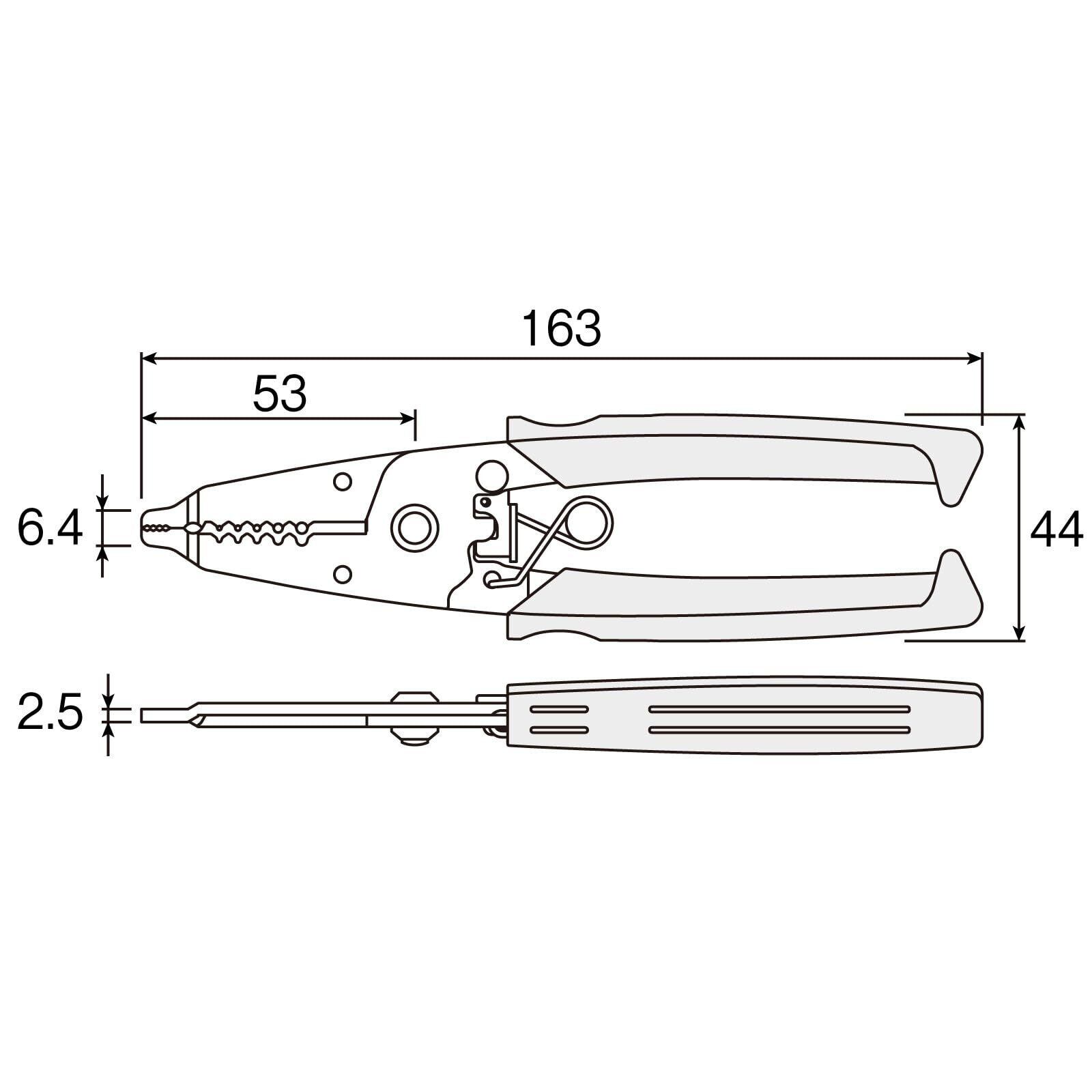 【適応電線】単線:0.65/0.8/1.0/1.6/2.0mmφ、より線:0.3/0.5/0.75/1.25/2.0mm^2【全長】163mm【重量】80g【用途】電気工事、配線工事、電子工作、機械修理、自動車整備、電装品の取り付け