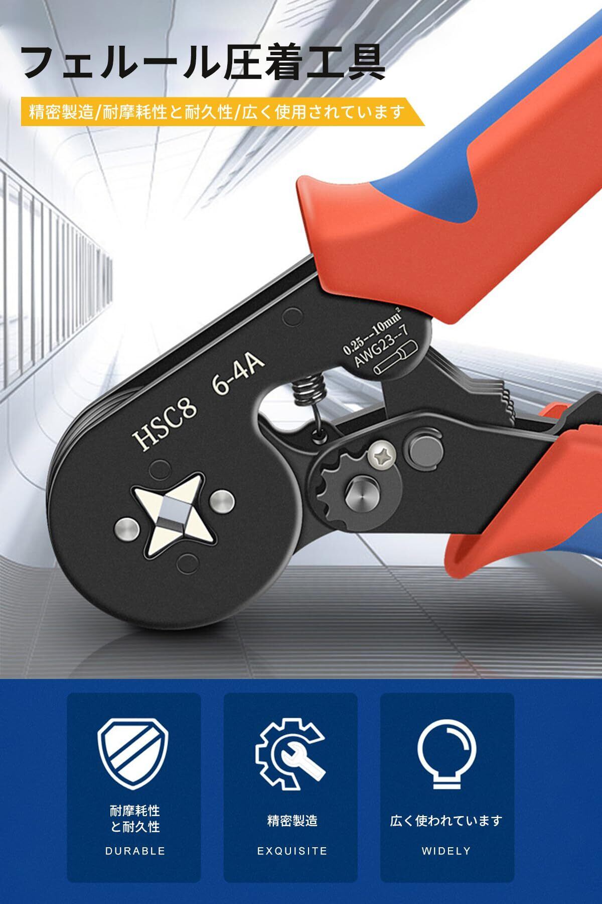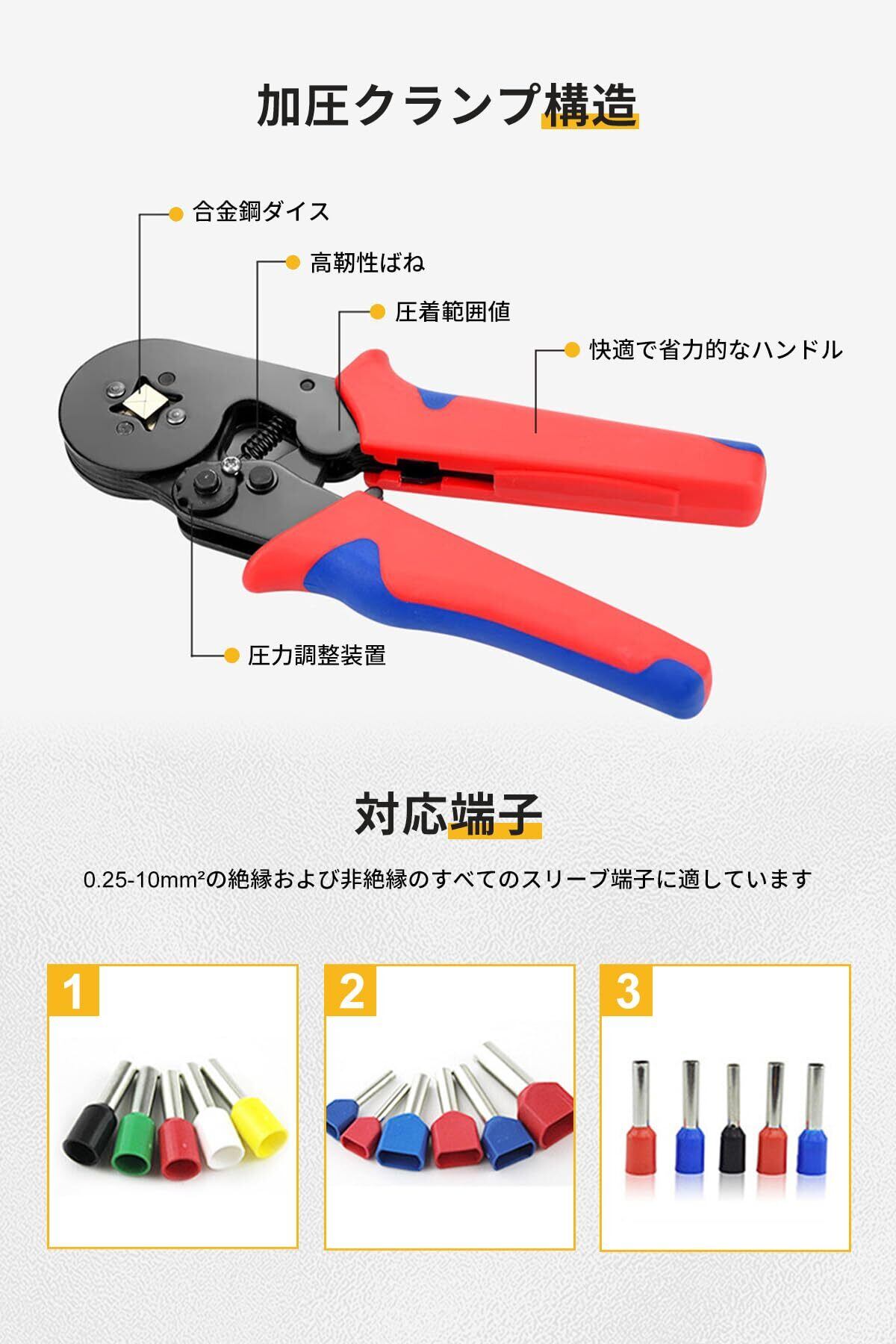 XXIAOTIAN(ゼクシオティアン) フェルール圧着工具 圧着ペンチ 1200PCS 圧着スリーブ用圧着ペンチ 0.25-10mm² 強力 ばね付き ロック付き フェルール端子セット 手袋 電気工事士 圧着端子付き (1200pcs+手袋)