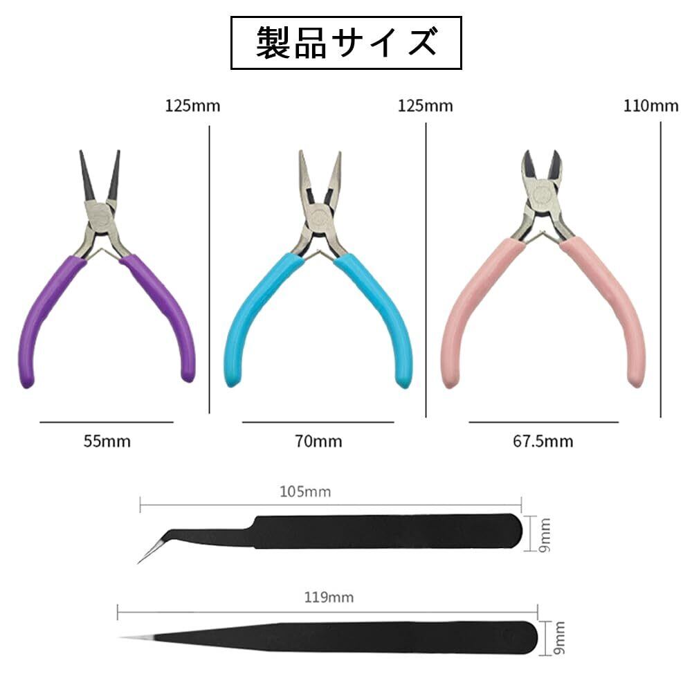 【パッケージ内容】糸切ハサミ、平ペンチ、丸ペンチ、ストレートピンセット、先端曲がりピンセット。さまざまなニーズを満たすことができます、ジュエリーのクラフト活動で、不可欠なジュエリーツールです。