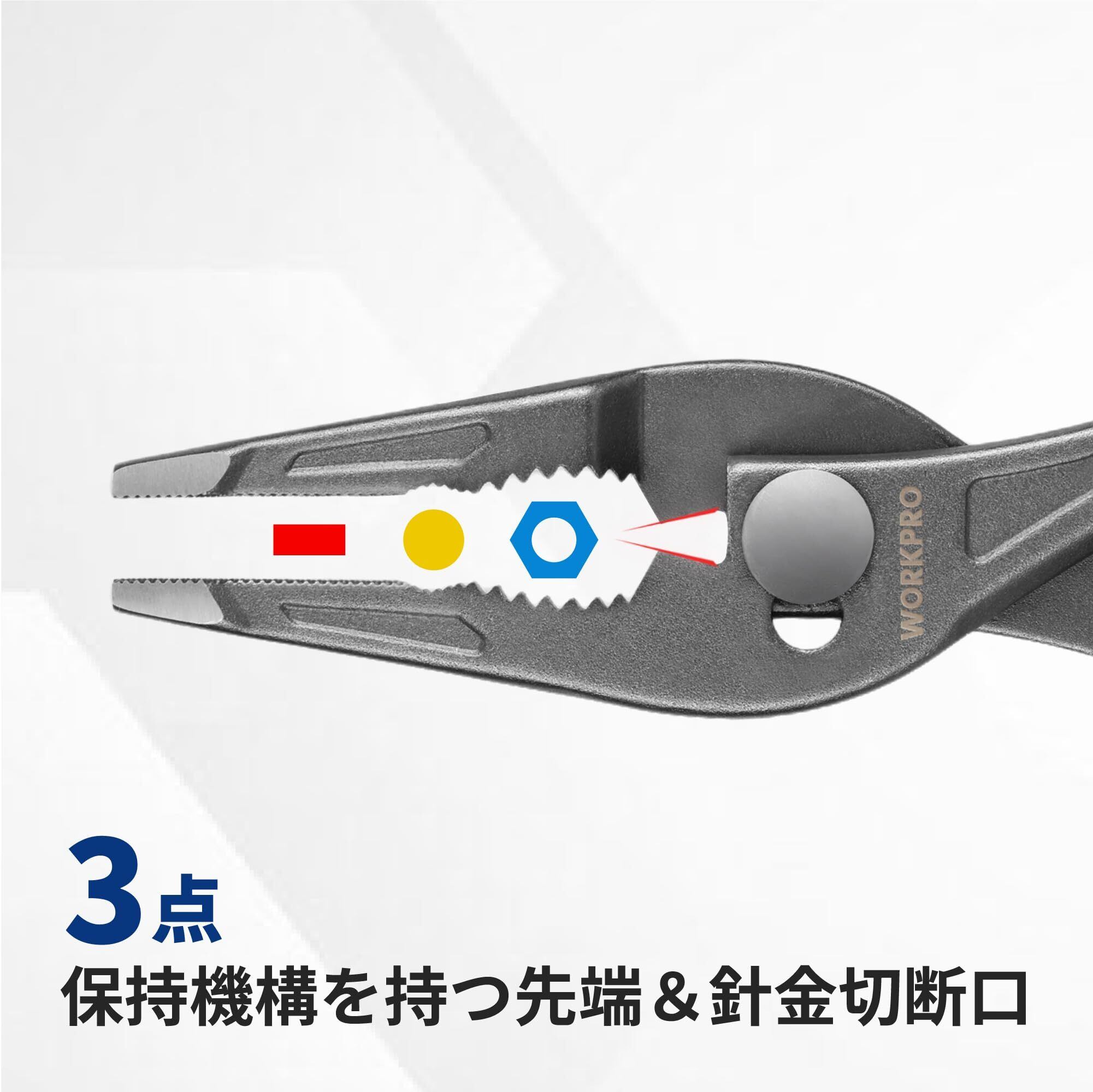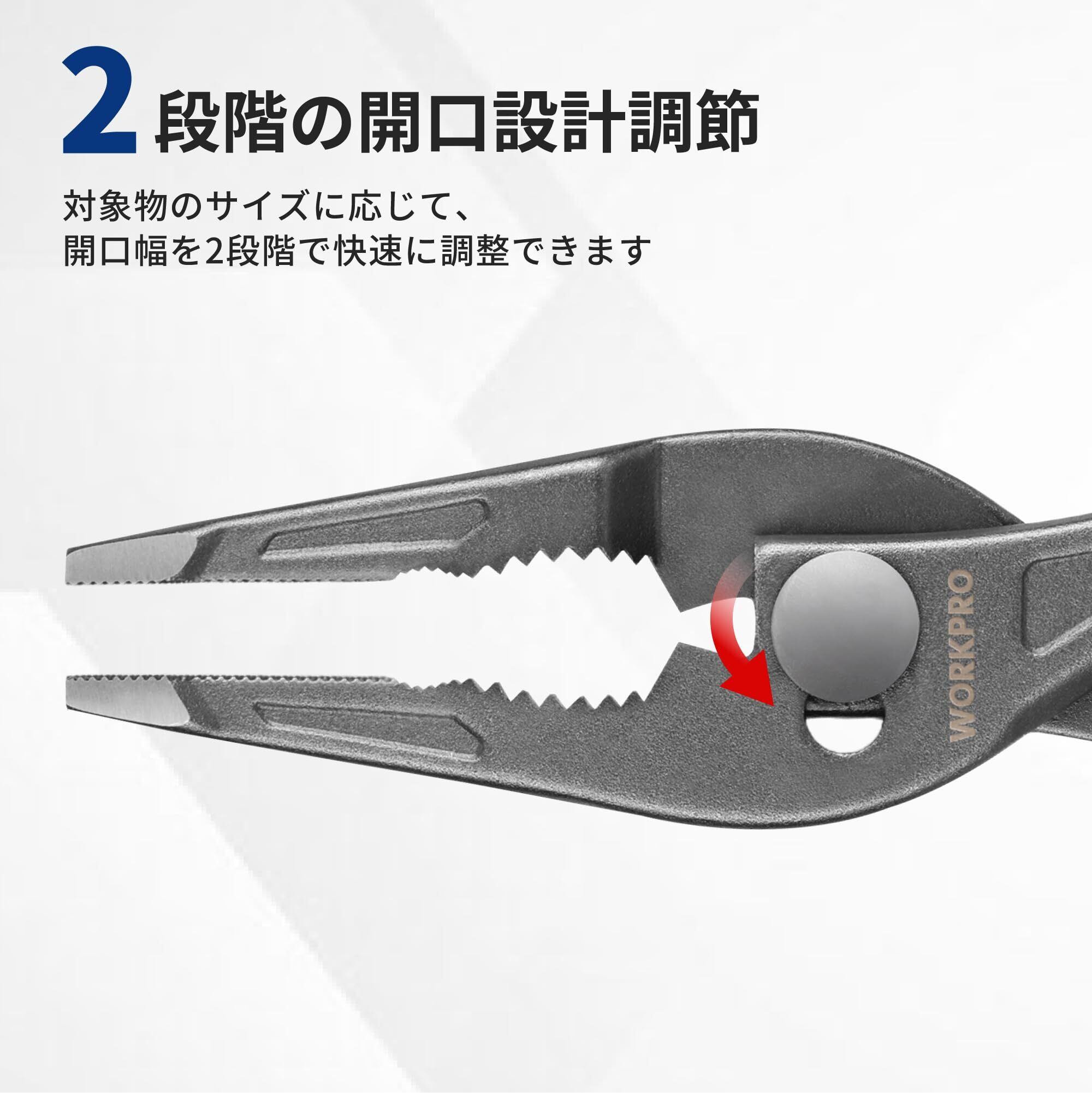 WORKPRO ペンチ ラジオペンチ コンビネーションプライヤー スリップジョイントプライヤー ワイヤーカッター 2段階調節 全長205mm 家庭修理 作業工具 DIY 手作り