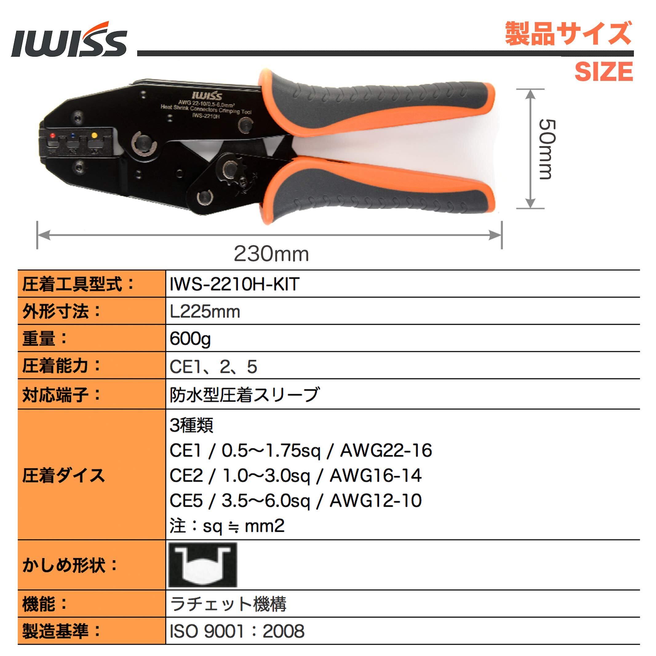 アイウィス(IWISS) 防水形圧着端子用 圧着スリーブ 圧着工具 ラチェット式 IWS-2210H