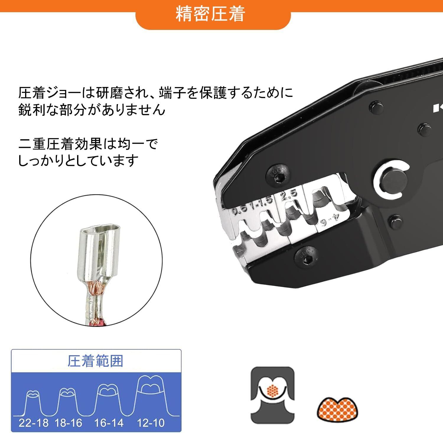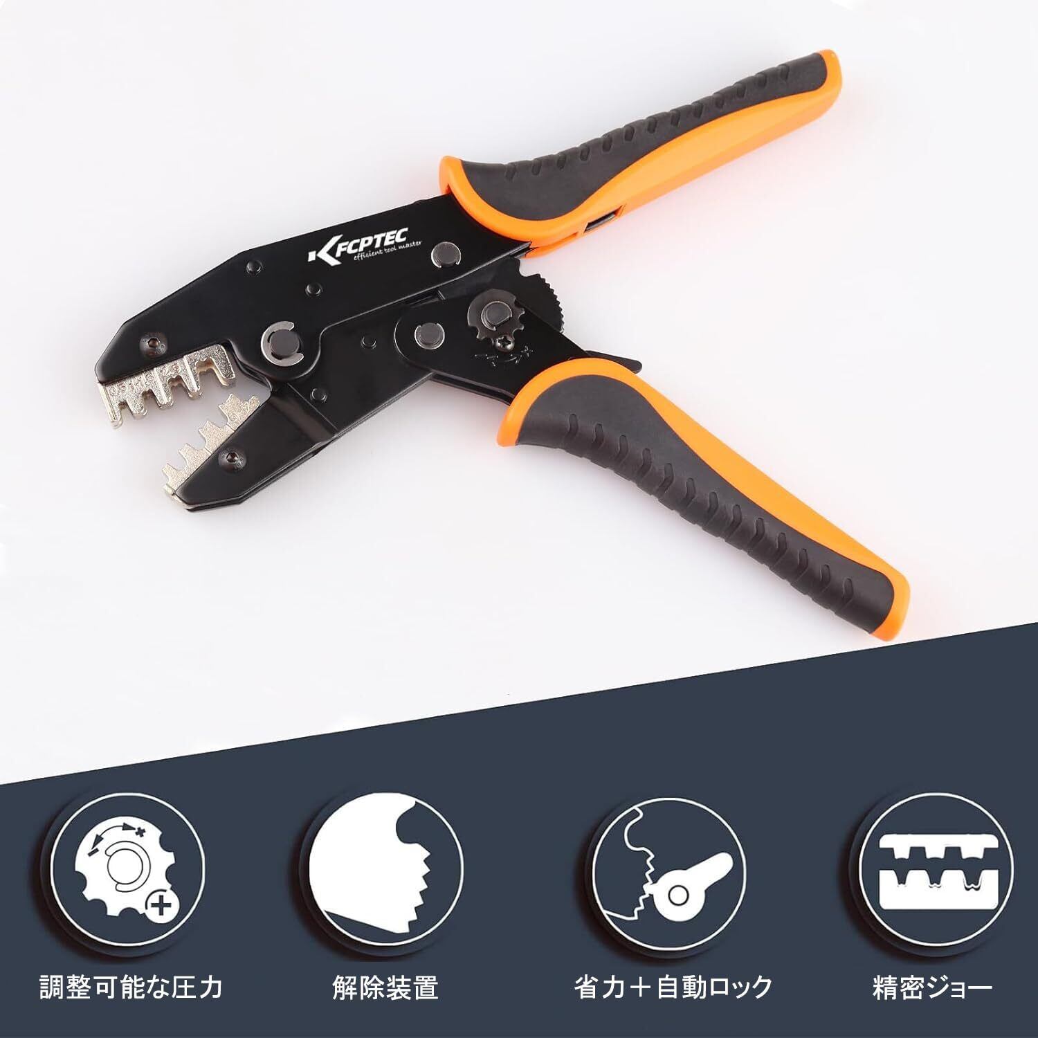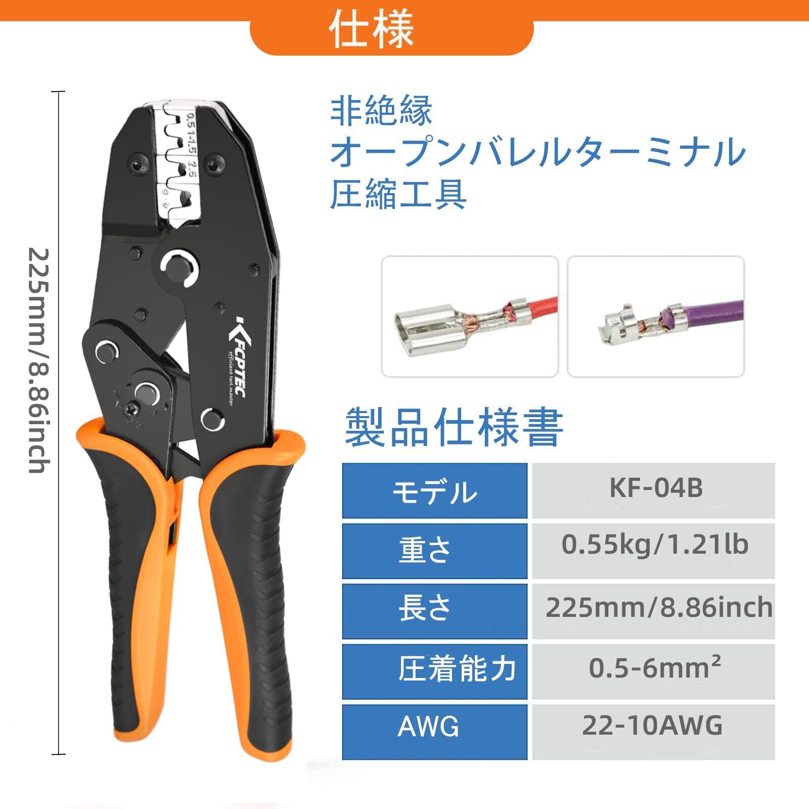 KF CPTEC 04B ラチェット式圧着ペンチ 非絶縁オープンバレル端子用 – JST、Molex、TE、AMP、Deutsch コネクタ対応 – AWG 22-10 (0.5–6.0mm²) 調整可能ワイヤクリンパー