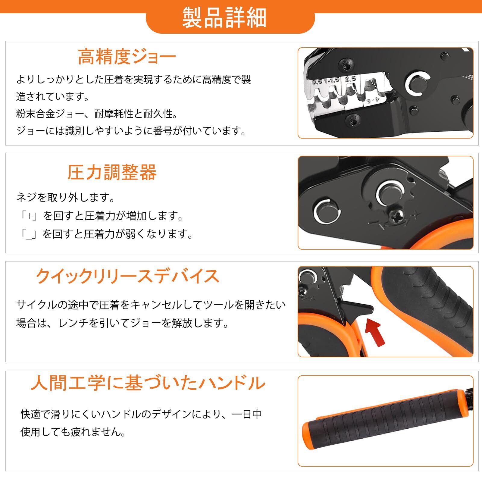 【調整可能な圧着設定】内蔵のスター型調整ホイールにより圧着力を正確にコントロールでき、過剰圧着や緩みを防止。さまざまな線径や端子タイプに適応可能です。