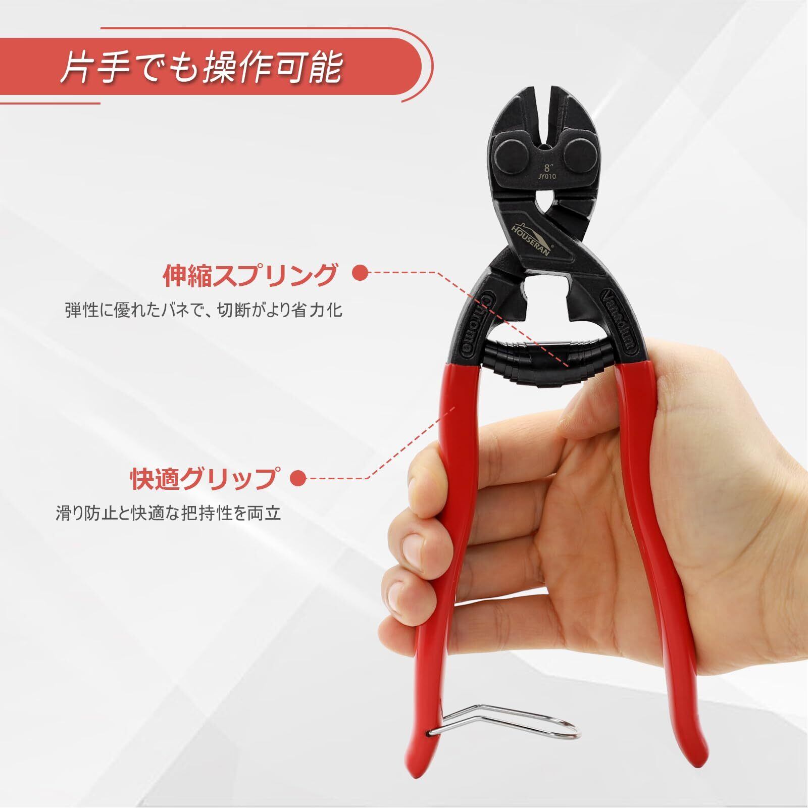 HOUSERAN ボルトクリッパー 20cm 番線カッター 強力 針金 切断 南京錠 カッター ボルトクリッパ 軽量 ワイヤー ケーブル リベット チェーン スクリュー ボルトの切断用CR-Vスチールブレード