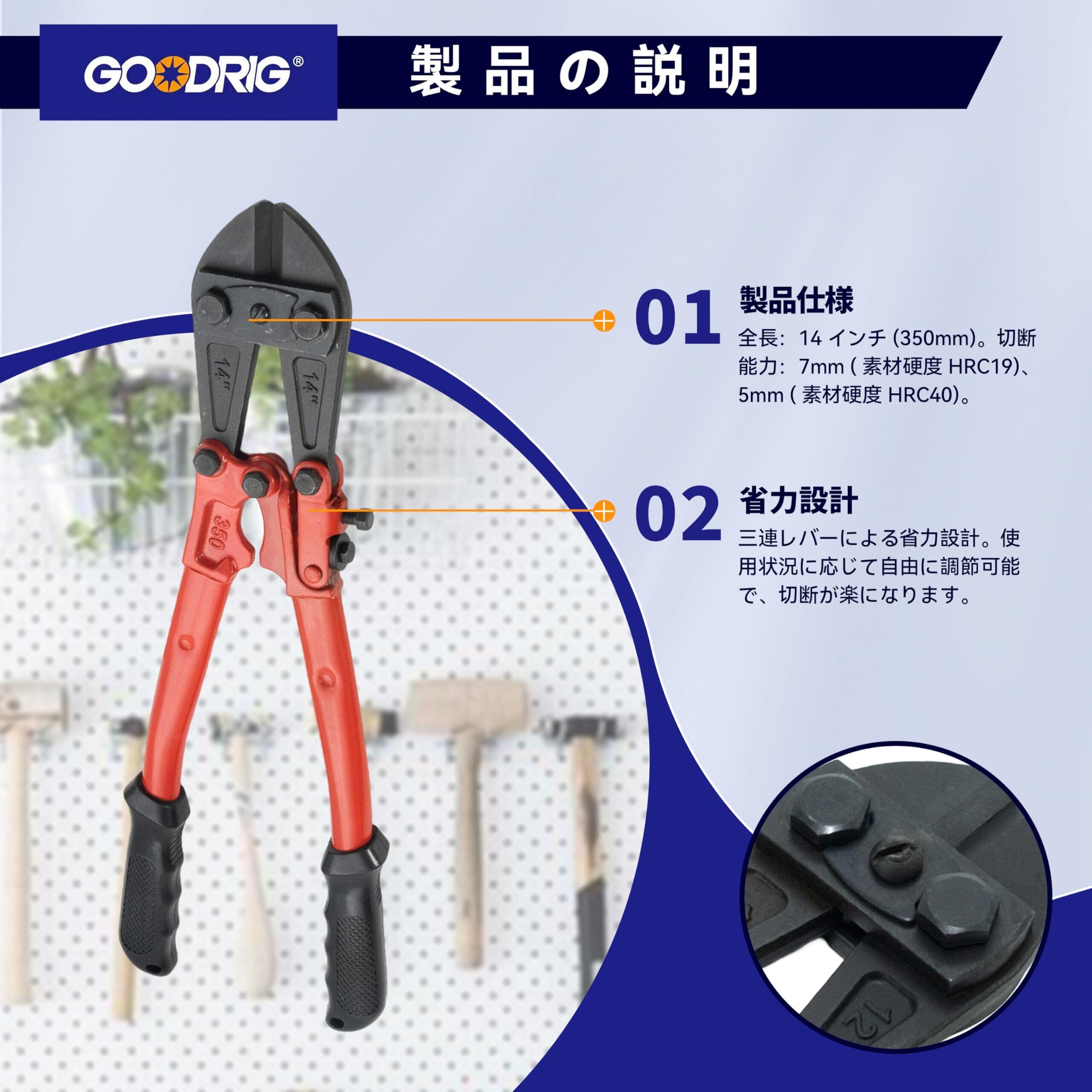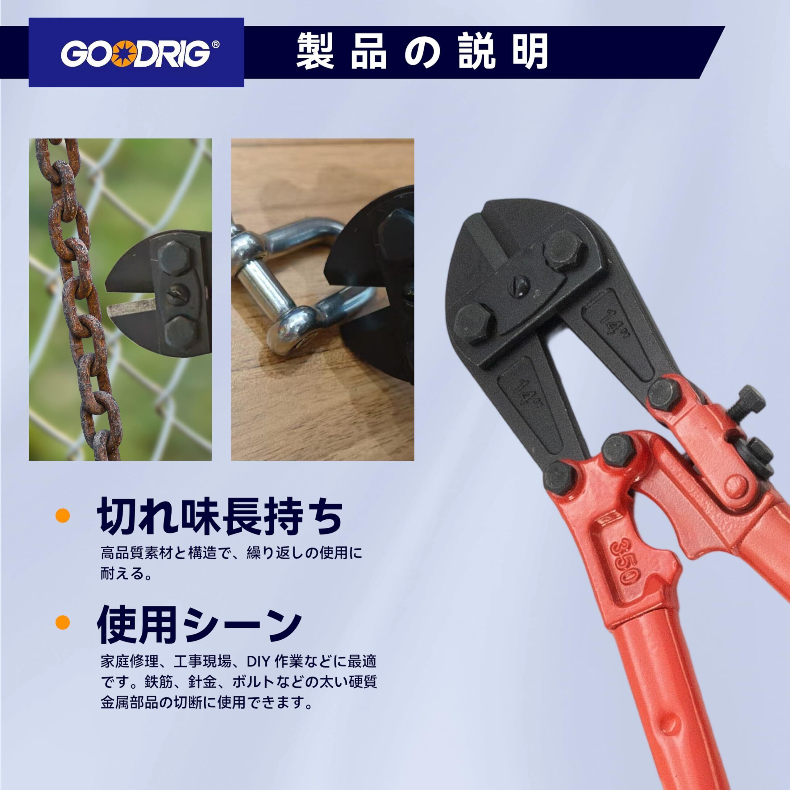 GOODRIG ボルトクリッパー 鉄筋カッター ワイヤーカッター スチールロープカッター ケーブルカッター 強力カッター 14” 350mm