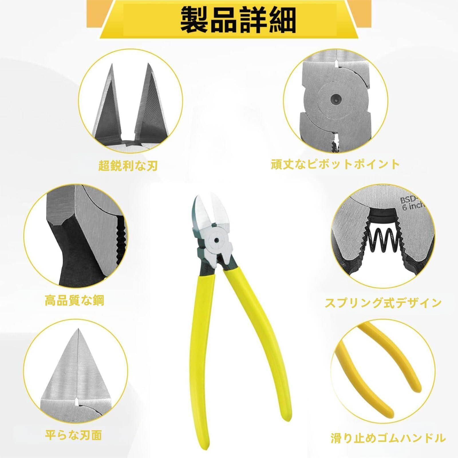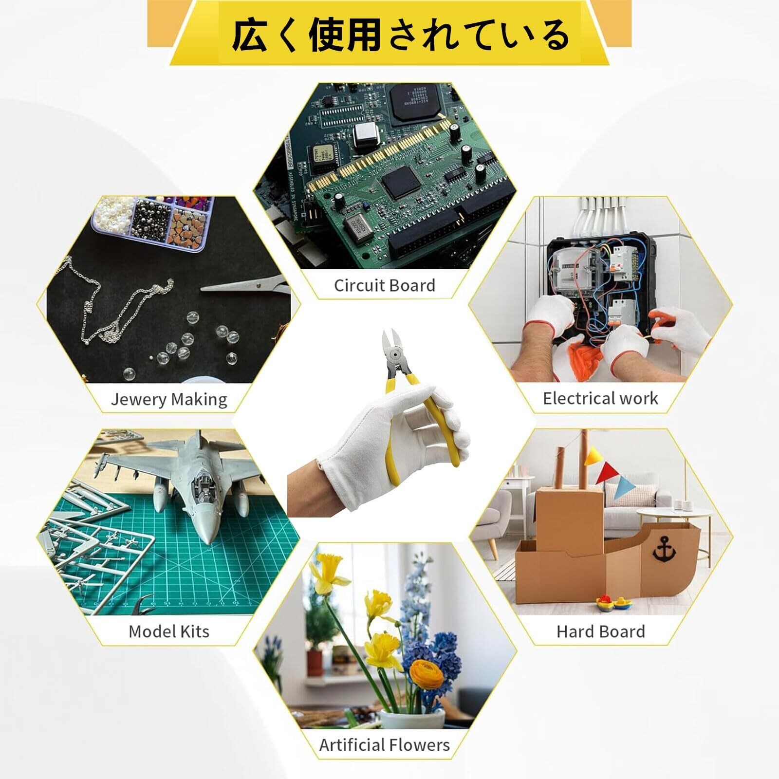【優れた切断性能】 高炭素鋼材を使用し、高周波焼入れ処理を施すことで、非常に鋭利な切断能力を実現。プロ級の切れ味で、きれいな断面を生み出します。 電線(銅線・軟鉄線)やプラモデルのゲート処理、小型家電の補修、電子工作など、幅広い用途に対応。刃先が鋭く、切り口も美しく仕上がります。