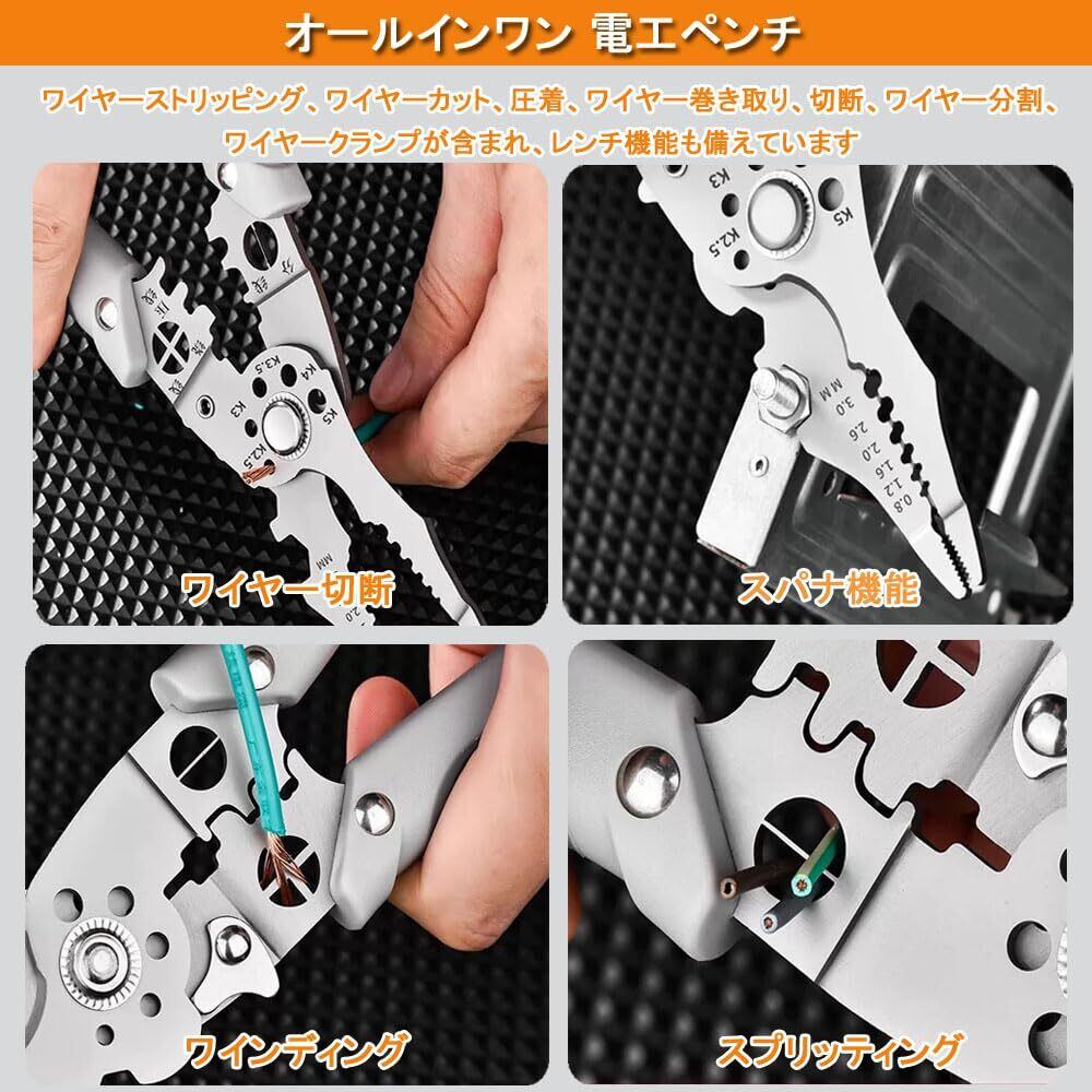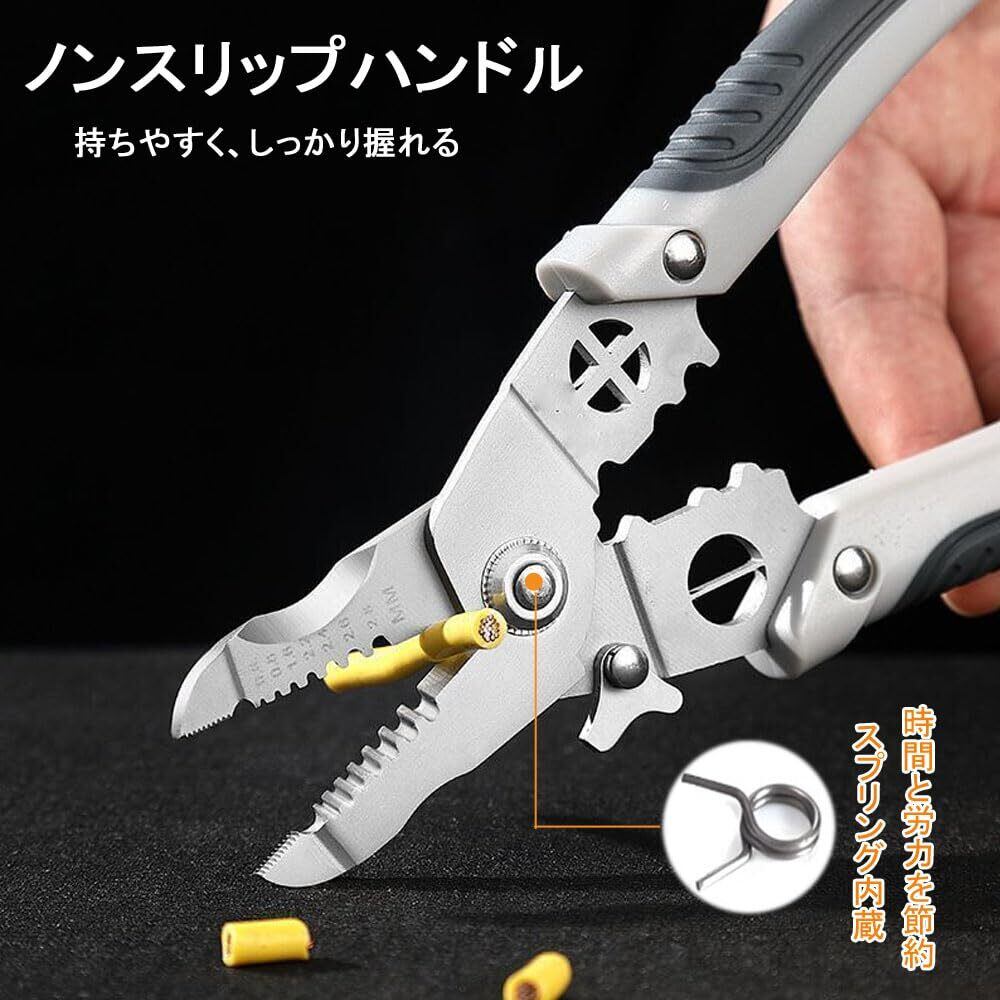 ワイヤーストリッパー 28in1多機能 ケーブルストリッパー 電工ペンチ 電線皮むき工具 圧着機能付 切断可能 滑り止めハンドル 省力 手の負担を軽減 圧着ペンチ 電工工具 かしめ工具 電線ストリッパー 太線用ミリサイズ線用