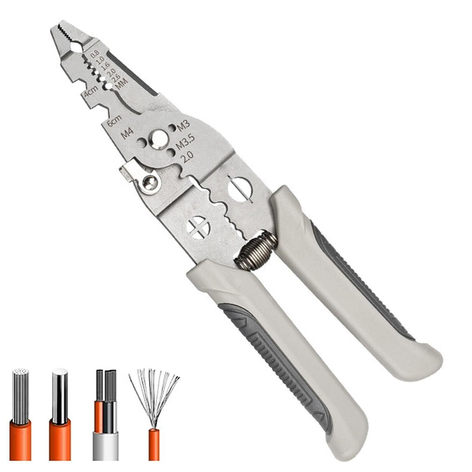 【使いやすい】この多機能電工ペンチはシンプルなデザインで、きれいなストリッピングと圧着接続を提供し、ワイヤーを損傷することなくワイヤーの内部コアを剥がすことができます。ワイヤーストリッピングツールは、撚線、単線、ツイストペア、光ファイバーケーブル、銅線、アルミニウム線など、あらゆる種類のワイヤーに適しています。多目的ペンチを使用すると、ワイヤーをより簡単に引っ張ったり巻いたりできるため、作業を迅速に完了できます。