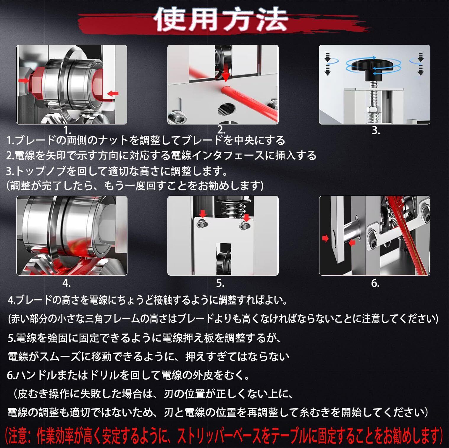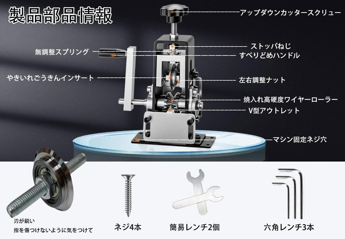 操作が簡単で安全:手動と電動両用の電線皮むき機,トップナットを回転させて刃の高さを調節でき,1 ~ 25 mmの線材をはがすことができ,線材を挿入し,手を回して柄を振ることができ,線材は簡単にはがせ,簡単で安全で,どんな線材の仕事にも簡単に対応できる
