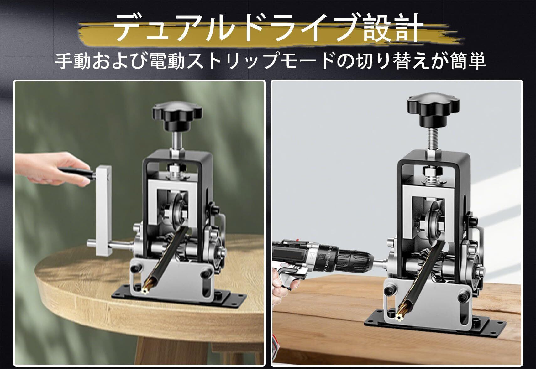 ワイヤーストリッパー 小型軽便 ケーブル剥離機 Φ1-25mm電線の被覆剥がし 剥線機 手動 電線皮むき機 銅線むき機スムーズに剥ける/カット/切断手動・電動両用/切断 銅線のリサイクル用 業務用 日本語の取扱説明書付き