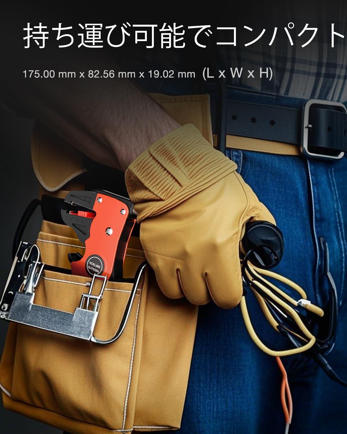 【多機能デザイン】ワイヤーストリッパーとカットは、単芯および撚り線を正確かつクリーンにストリップできます。特にスピーカーワイヤーやフラットリボンケーブルのストリップに適しています。剥き線芯範囲:10〜24 AWG(0.2mm²-5.5mm²)。切断範囲:0.08-3.5mm²