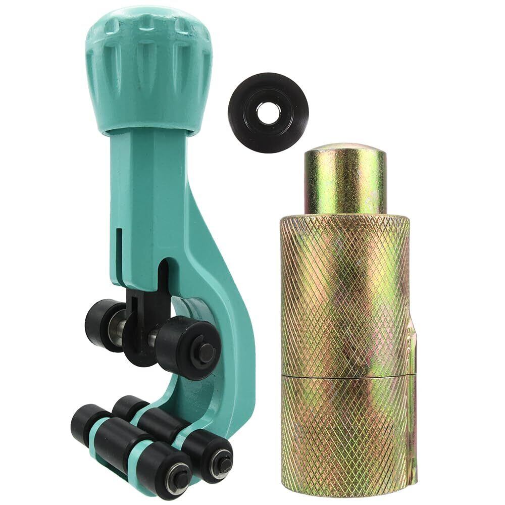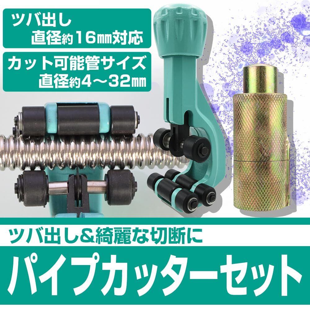 【セット内容】パイプカッター×1点 ツバ出し工具×1点 替え刃×1点 【サイズ】詳細は画像をご確認ください。※パイプカッターの切断可能な太さは直径約4mm〜32mm・ツバ出し工具は直径16mm対応 【替え刃交換方法】カッター上部の調整用ダイヤルの中に替え刃がございます。ドライバーでネジを取ることで替え刃が取り出せます。