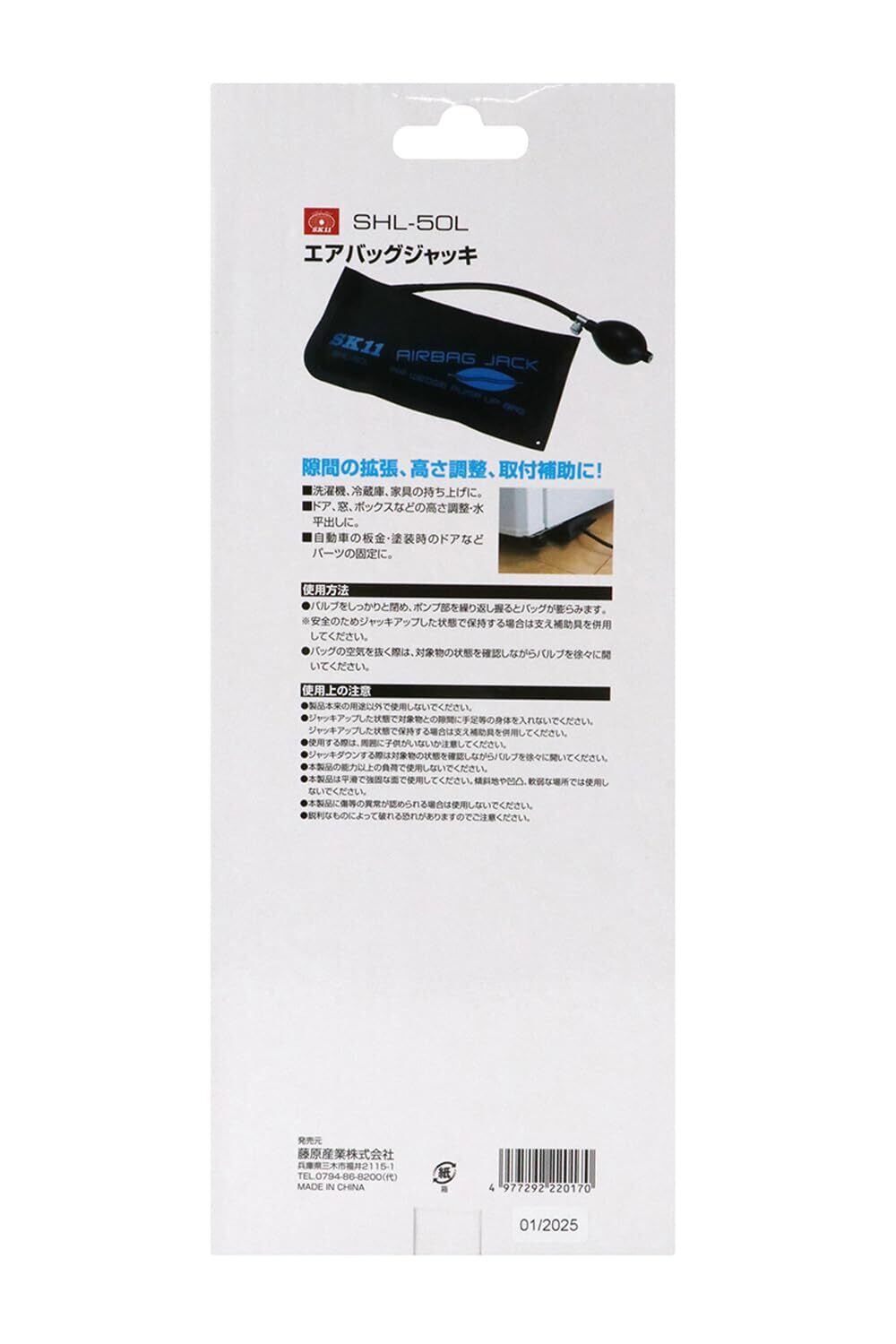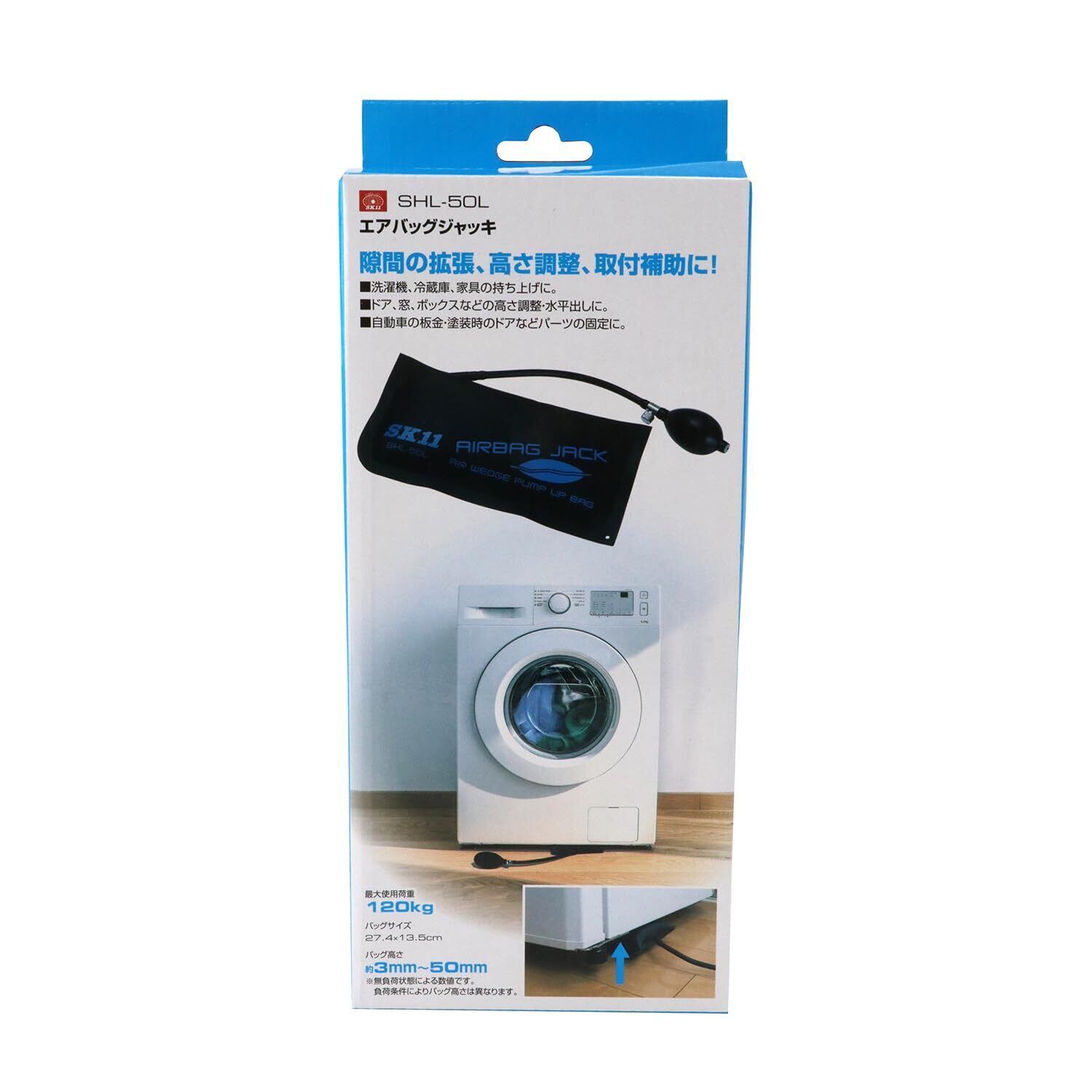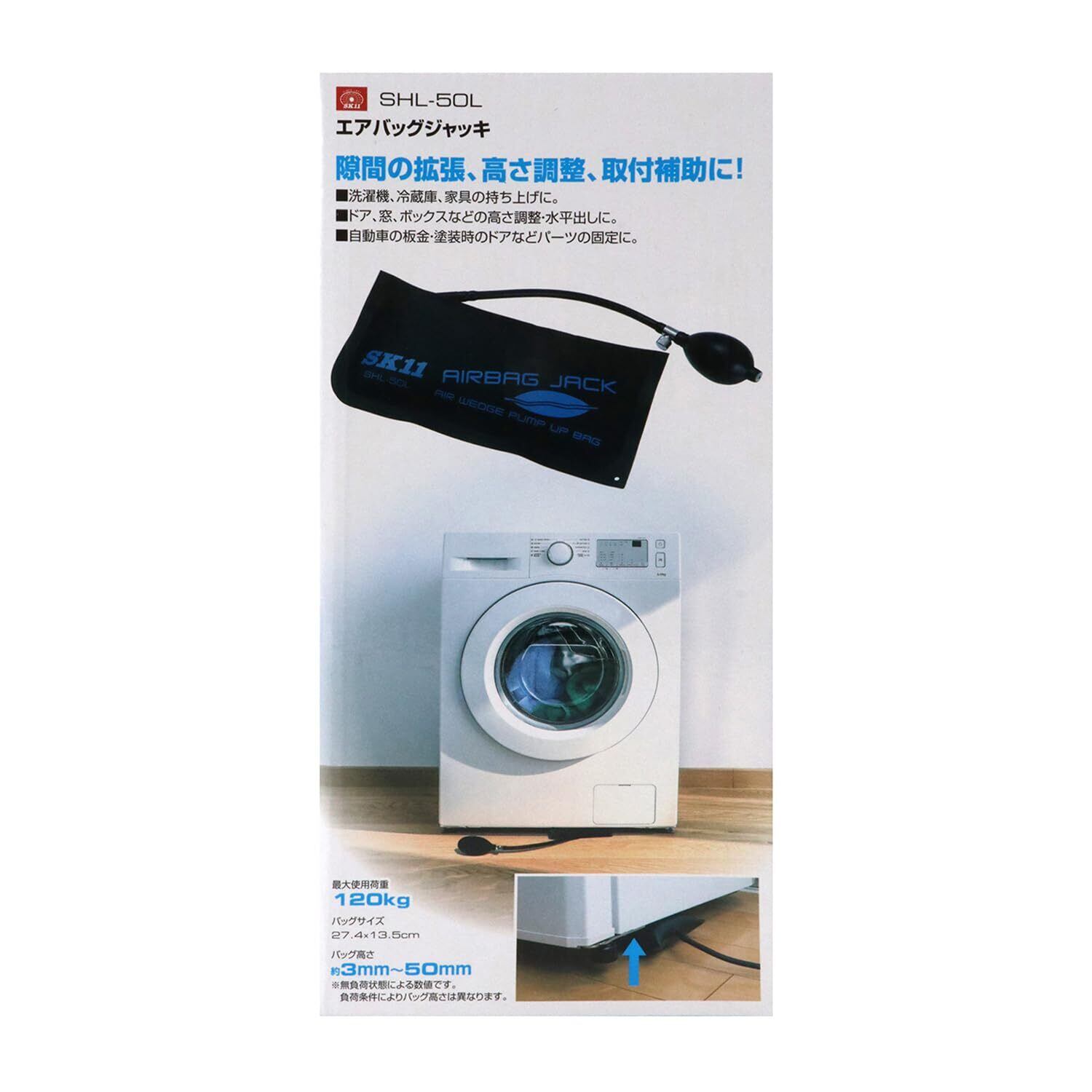 SK11(エスケー11) エアバッグジャッキ 耐荷重120kg バッグ高さ3~50mm バッグサイズ27.4×13.5cm 隙間の拡張・高さ調整・取付補助に SHL-50L