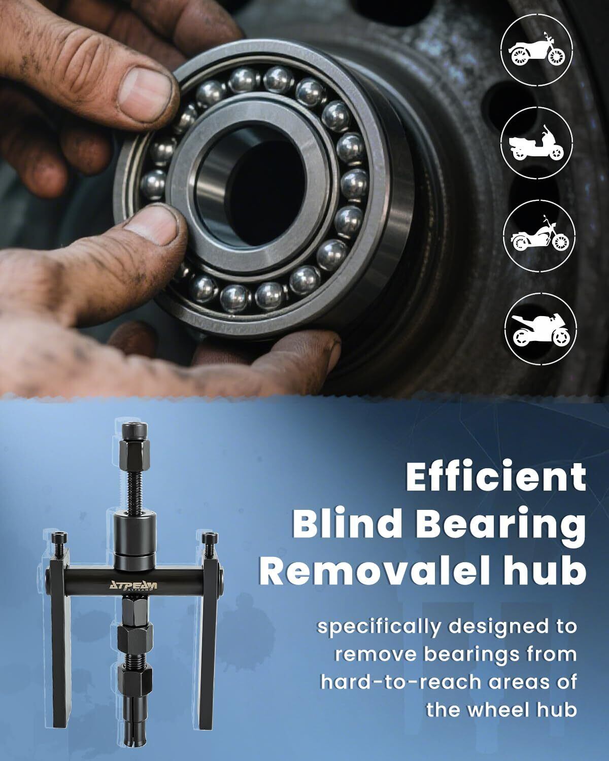 効率的なベアリング交換:このベアリングプーラーは、モーターサイクルや自動車のホイールベアリングを素早く簡単に取り外すために設計されています。難しい位置にあるベアリングも簡単に取り外すことができ、作業の効率を大幅に向上させます。