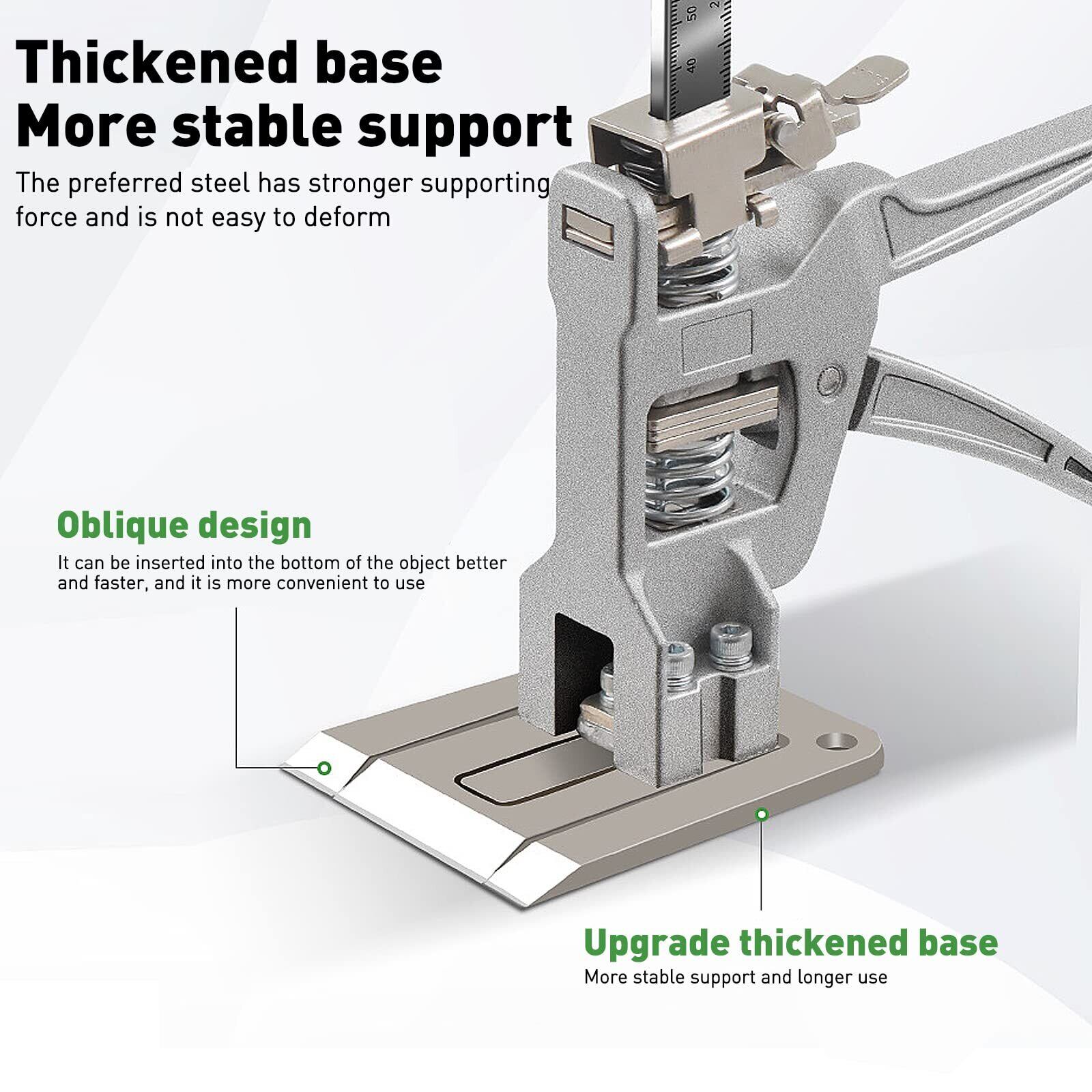 【増肉・増量パレット】キャビネットジャックのパレットとベースの長さと厚さが増加し、耐力領域が大きくなり、物体の持ち上げと下降がより便利で安全になります。 切り欠き部分は斜めに設計されており、持ち上げたいものをより簡単かつ迅速に挿入でき、作業効率が向上します。