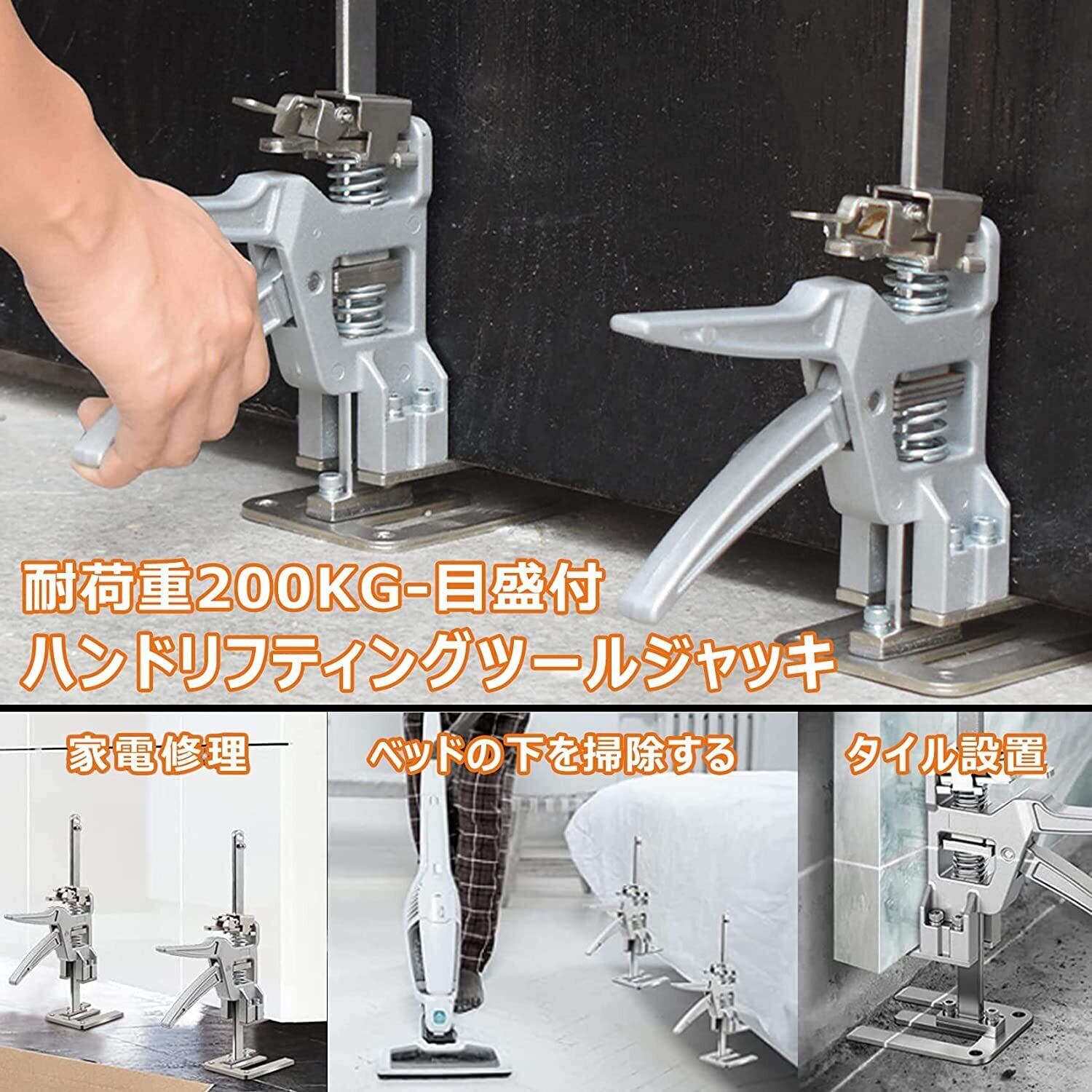 GHDVOP ミニジャッキスタンド 爪ジャッキ ハンドジャッキ 200kgの耐荷重 スタンド ラボタイルレベリングシステム ドア使用ボードリフター ステンレス 省力 ミニ昇降台 調整器 定規付き タイ ル設置補助装置 壁、床、ドア、キャビネットの設置に使用