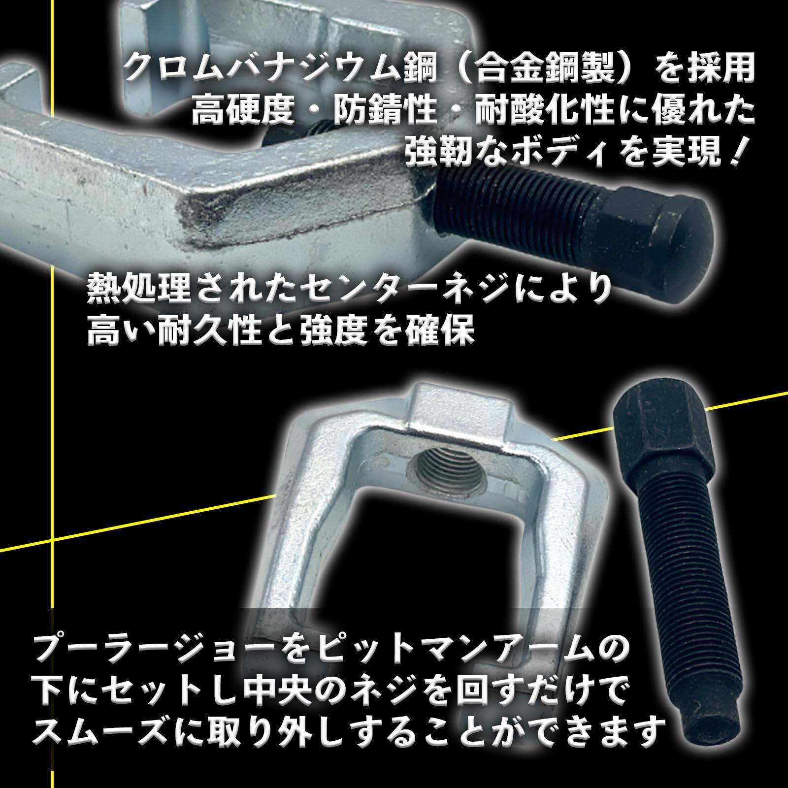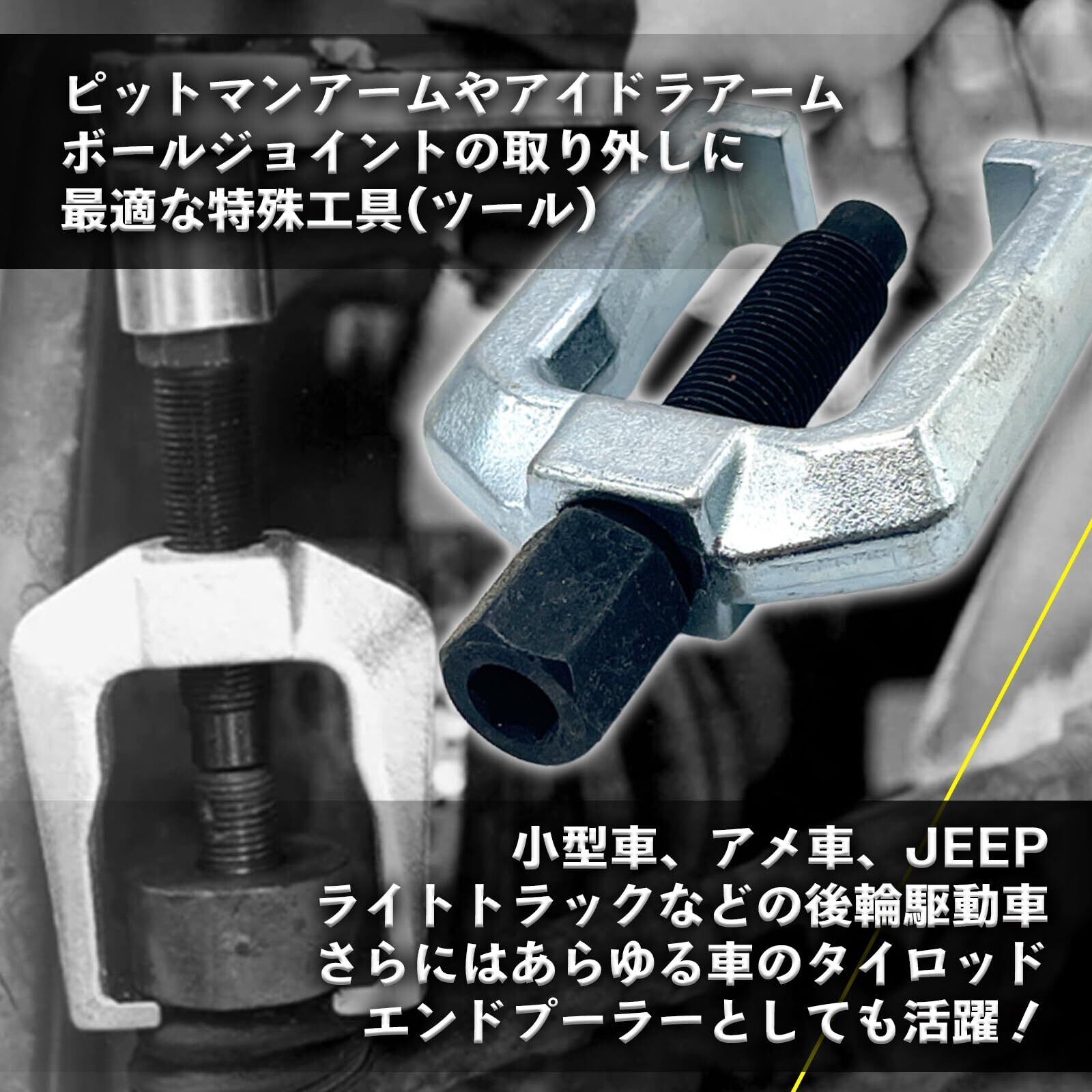 ほとんどの乗用車や軽トラックのピットマンアームアセンブリ、タイロッドエンドの取り外しが可能です。自動車修理やメンテナンス作業を効率化できる必須アイテムとなります。