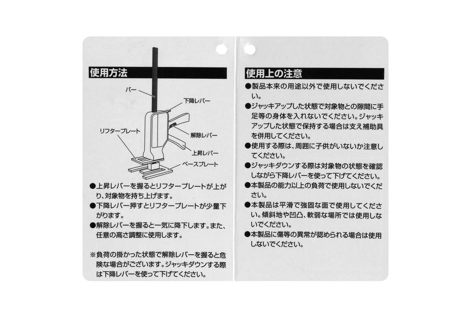 ※ジャッキダウンする際は下降レバーを使って下げて下さい。