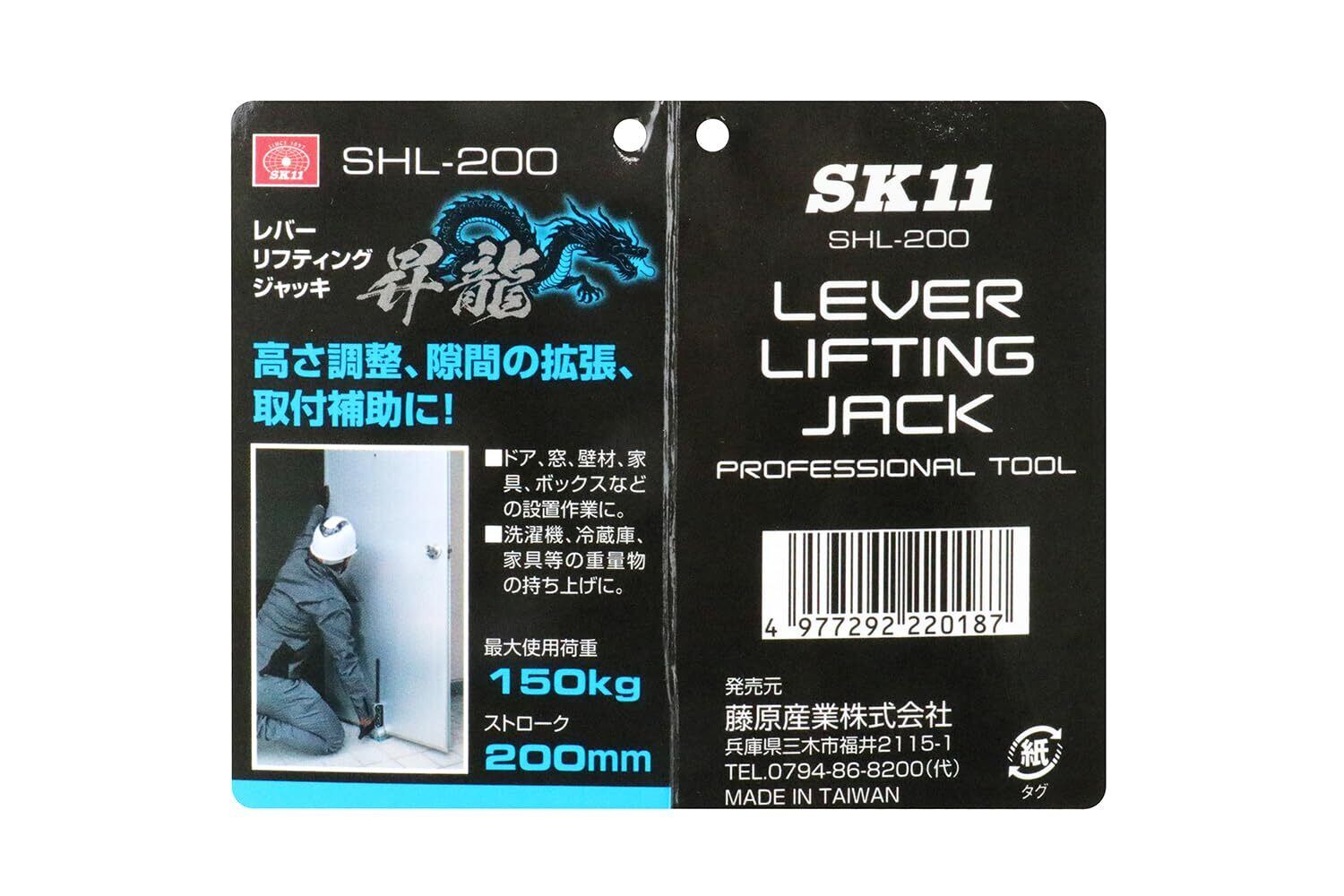 SK11(エスケー11) レバーリフティングジャッキ 昇龍 耐荷重150kg ストローク200mm 高さ調整・隙間の拡張・取付補助に SHL-200