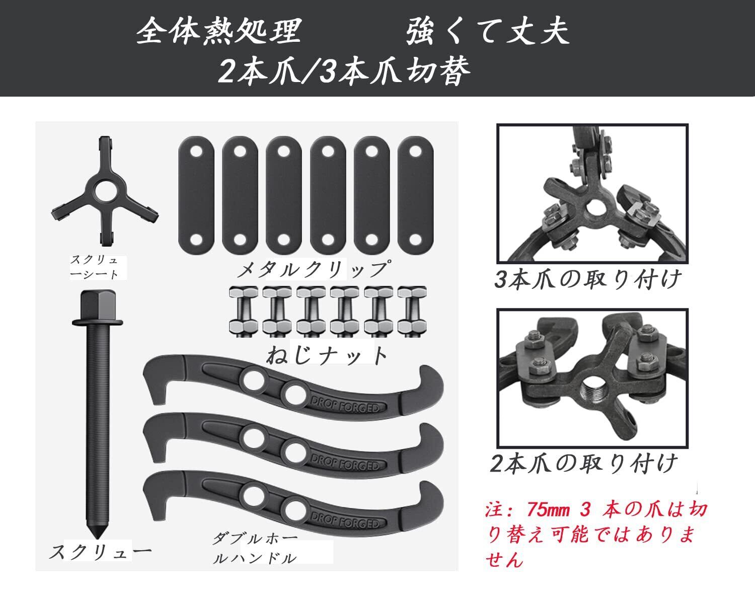 ギアプーラー 3本爪 2本爪 変更可能 プーリ抜き ギア 外し プーラー 工具 12インチ 外深掛け 内深掛け 外浅掛け 内浅掛け 範囲は60~75mm、70~100mm、120~150mm