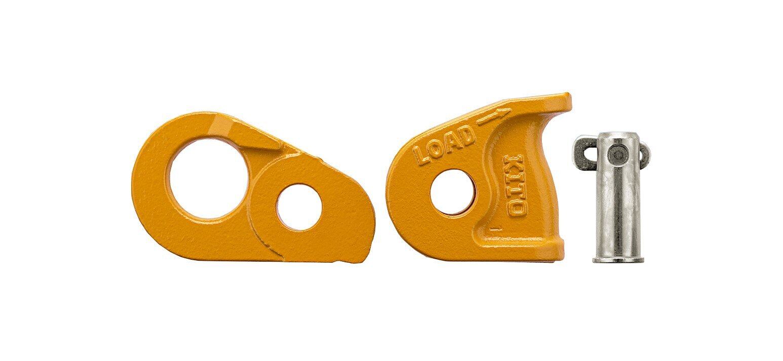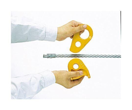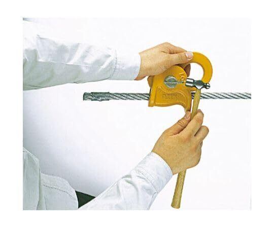 ●キトークリップは、レバーブロック、チェーンブロックなどとワイヤーロープとの併用作業用に開発されたワイヤーロープ専用固定器具です。ワイヤーの場所を問わず、どこでも簡単に取り付けられます。ワイヤーをフレームに通し、引くだけでワイヤーを確実につかみます