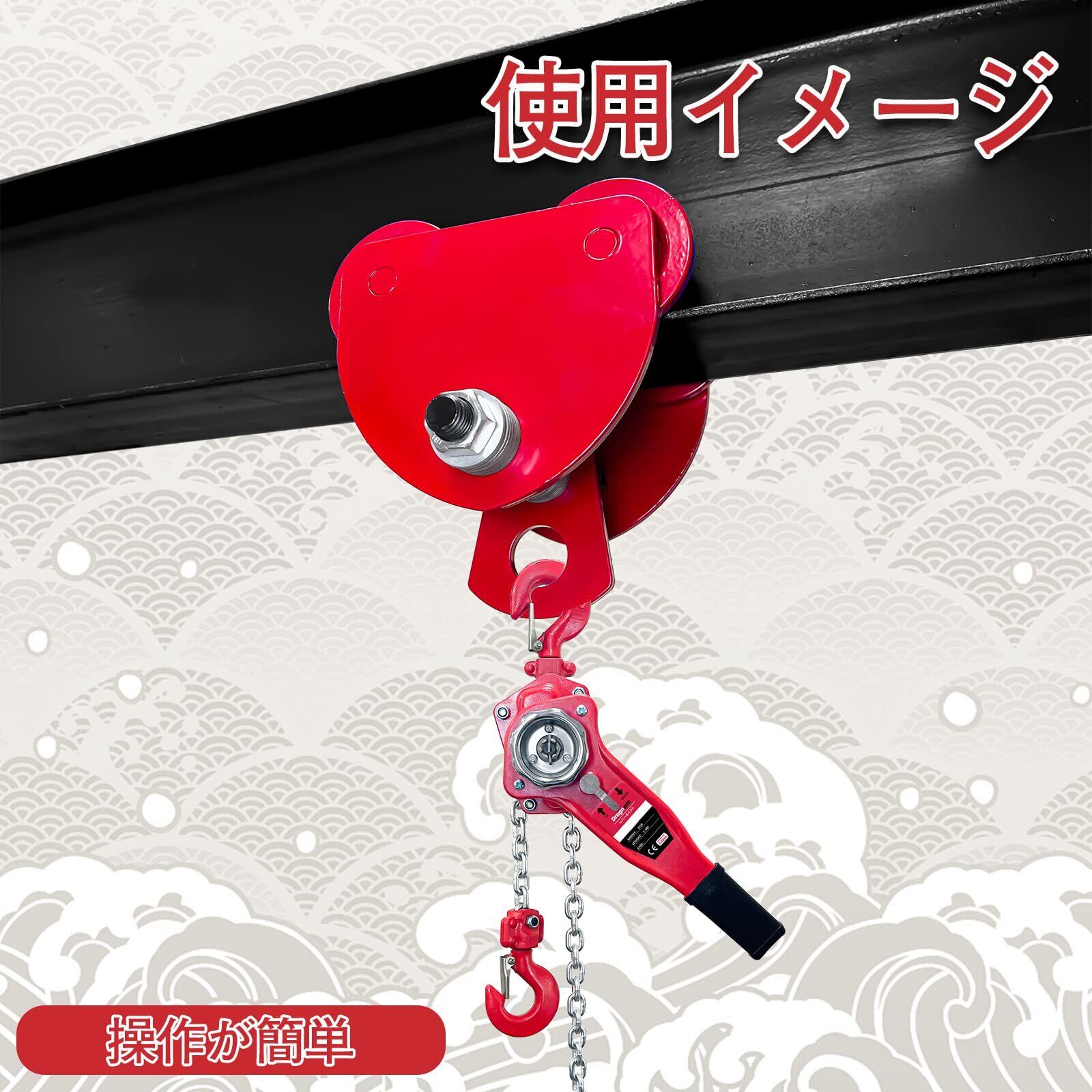 【コンパクト】チェーンブロック等の水平移動に最適なツールです。狭いスペースでも荷物を運ぶことができ、省スペースでの作業に最適です。コンパクトで耐久性があるトロリーです。