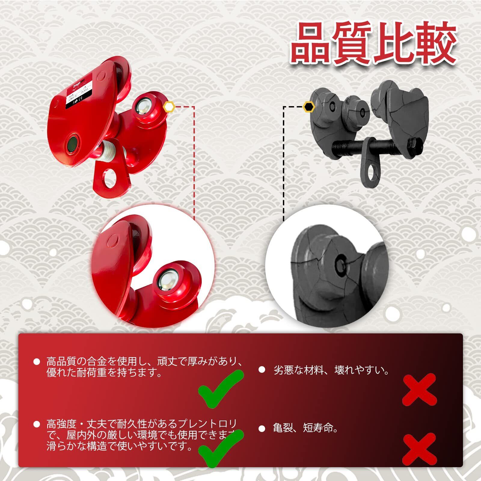 Dragnwin トロリー 手動用プレントロリー トロリー 0.5t プレントロリー トロリー 500kg トロリー 吊り下げトロリー チェーンブロック用プレントロリー 手動トロリ 単管トロリー h鋼 トロリー 単管用トロリ
