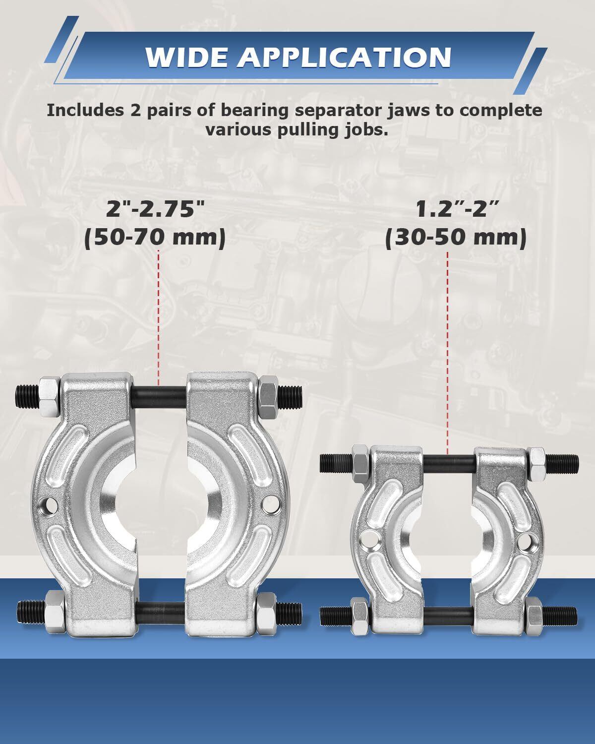 【2種類サイズのベアリングセパレーター】ベアリング直径30mm~50mmと50~75mmに対応、汎用的に様々なベアリング抜きとして使えます。整備士があらゆる範囲の作業を正常に完了するのに役立ちます。