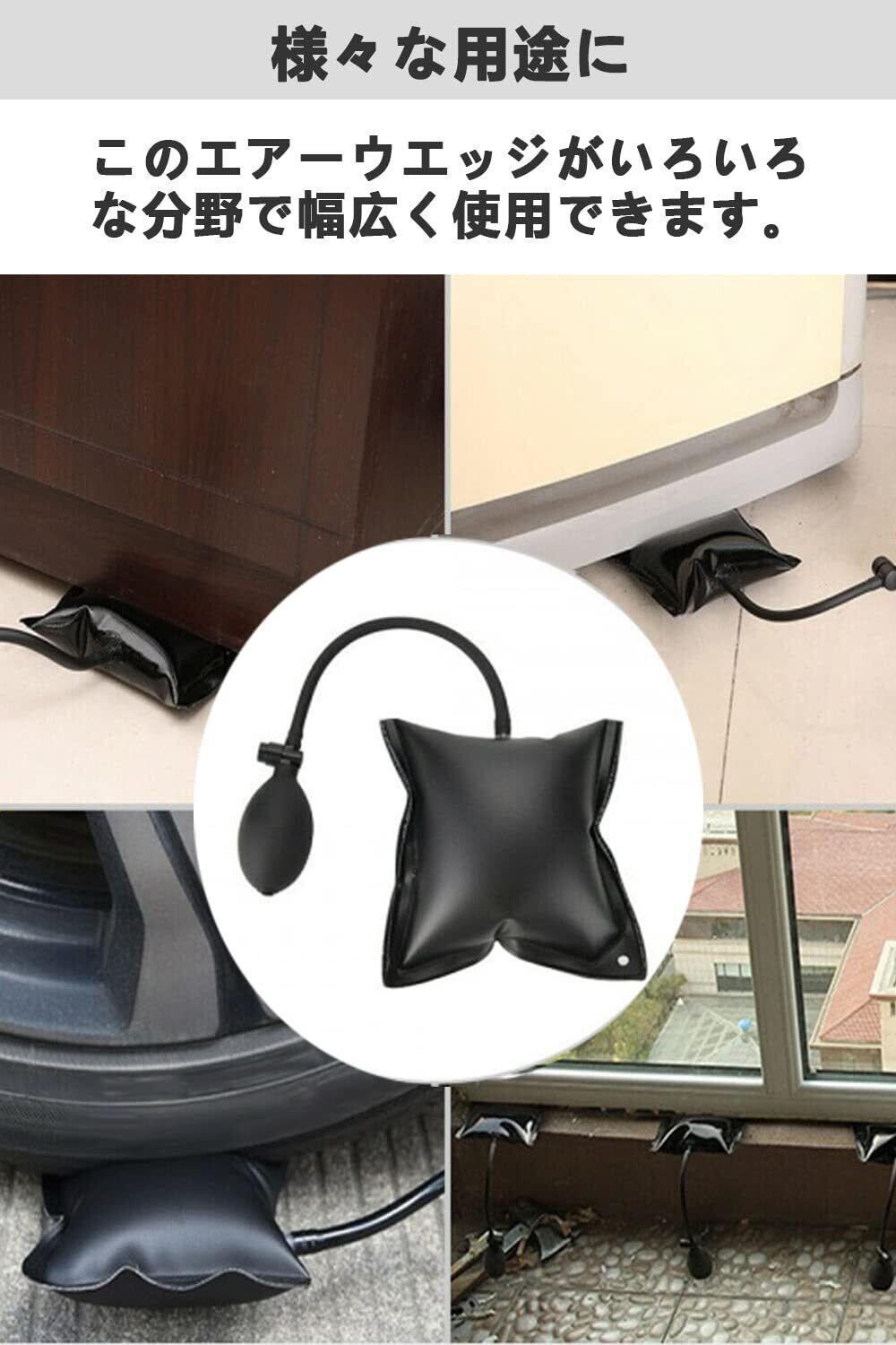 【様々な用途に】このエアーウエッジがいろいろな分野で幅広く使用できます。車のロック解除、インロックの際の鍵を解錠する作業に。冷蔵庫、家具、窓、扉、本棚、圧搾ポンプロッカーなどの持ち上げ。