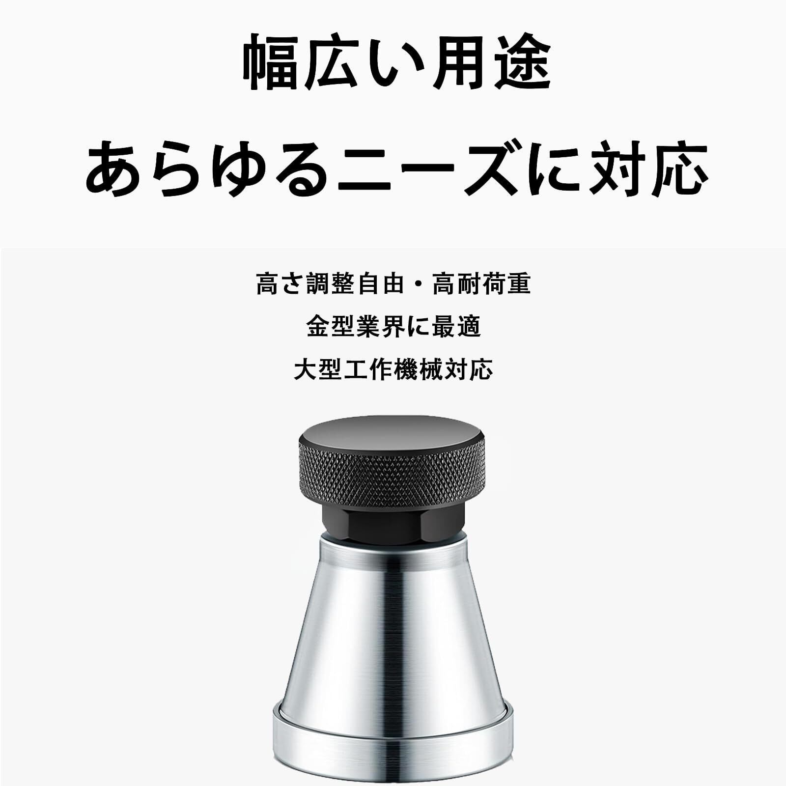 【多様な産業応用】単なるジャッキではなく、多目的な機械支持スタンドです。工作機械の据え付け・調整、金型(ダイ)処理・製作、プレス盤の補助パッドなど、様々な産業現場や工場で不可欠なツールです。