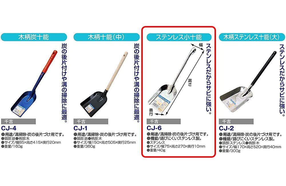 千吉(Senkichi) ステンレス小十能 溝掃除・炭の後片づけ用 CJ-6
