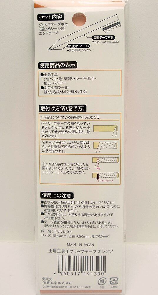 手にフィットして作業効率アップ! ショベル・鍬・鎌などのグリップに巻くだけ。