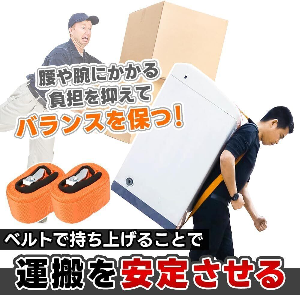 1人でも重たい家具家電を持ち運べる運搬ベルトです。背負うようにして使用するため両手が空き、しっかりと安定した運搬が可能。全長約5.5mもあるため、冷蔵庫や箪笥など幅のあるものも持ち運ぶことが出来る便利なアイテムです。