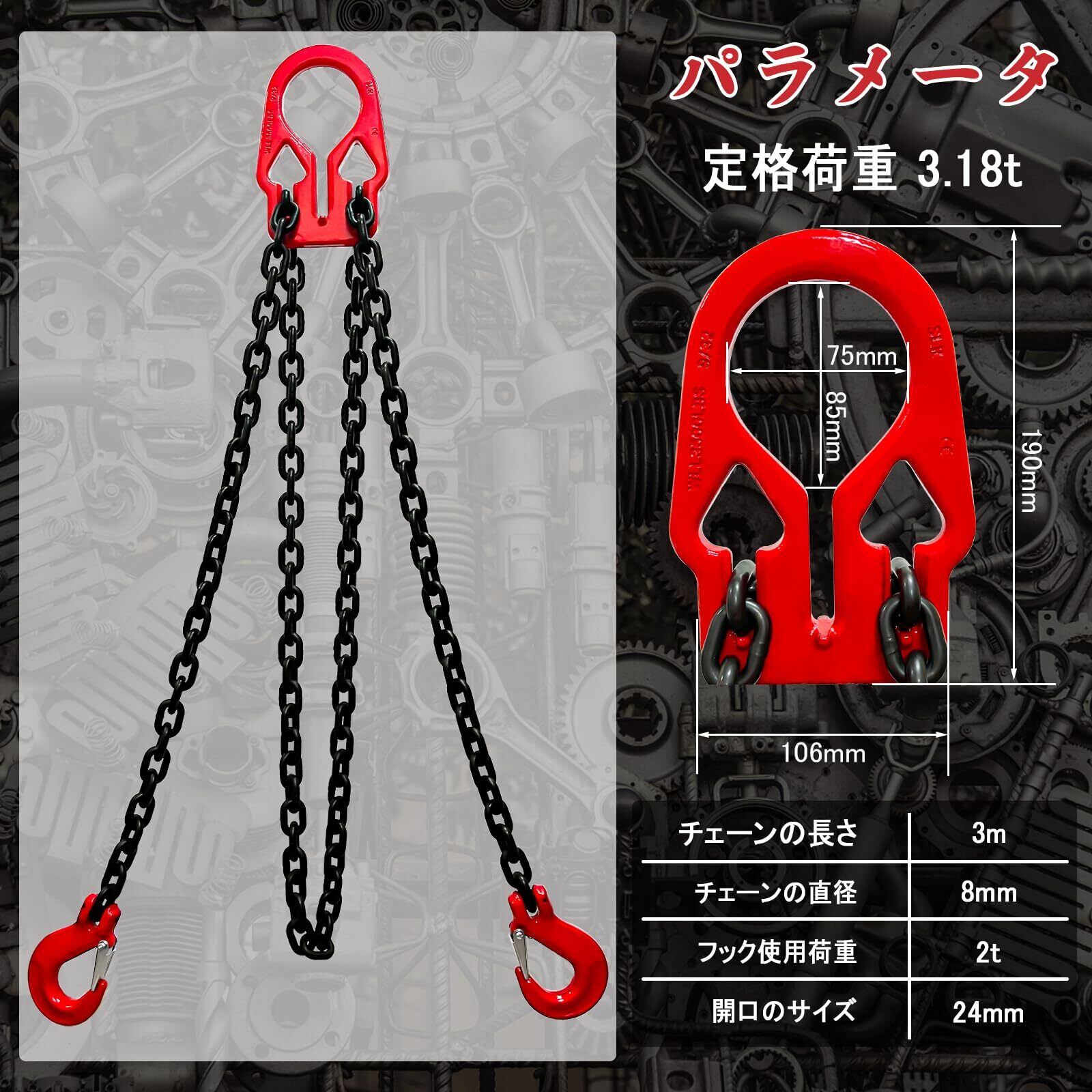 【サイズ】定格荷重:3.18t チェーンの長さ: 3m チェーンの直径:8mm