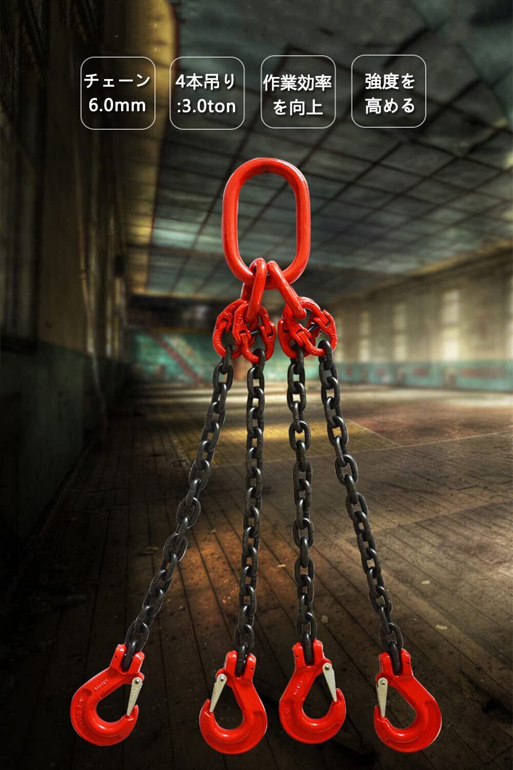 4本吊り チェーンスリング 3ton 1.5m 4本吊り スリングフックタイプ G80チェーンフック チェーン径6mm 吊り具チェーン