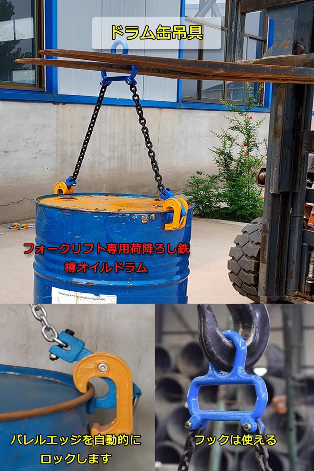 マルチリング式 ドラム缶リフター 1t チェーン式の吊り具 1000kg 小型・軽量なドラム缶専用吊り具 スリングチェーン吊り具【1t-2Leg】
