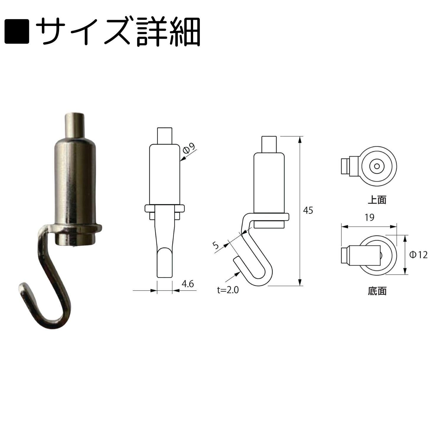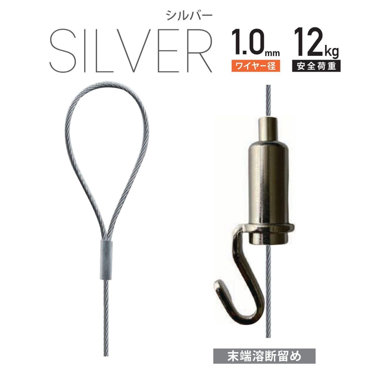 フック形状の自在金具とワイヤーがセットになった吊下げ金具です。