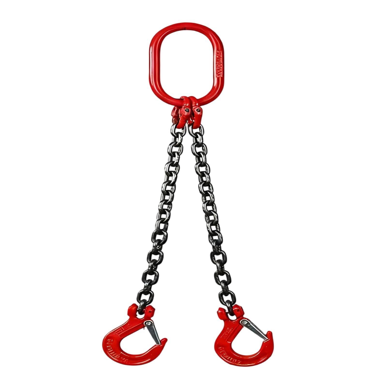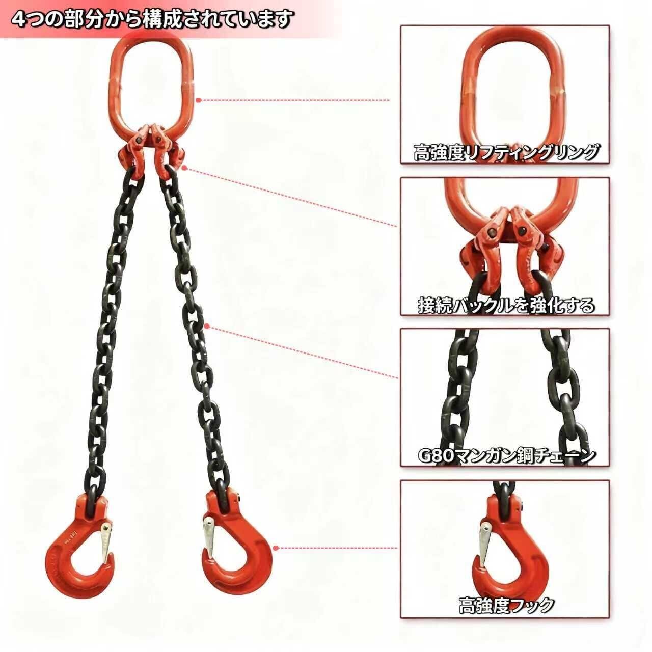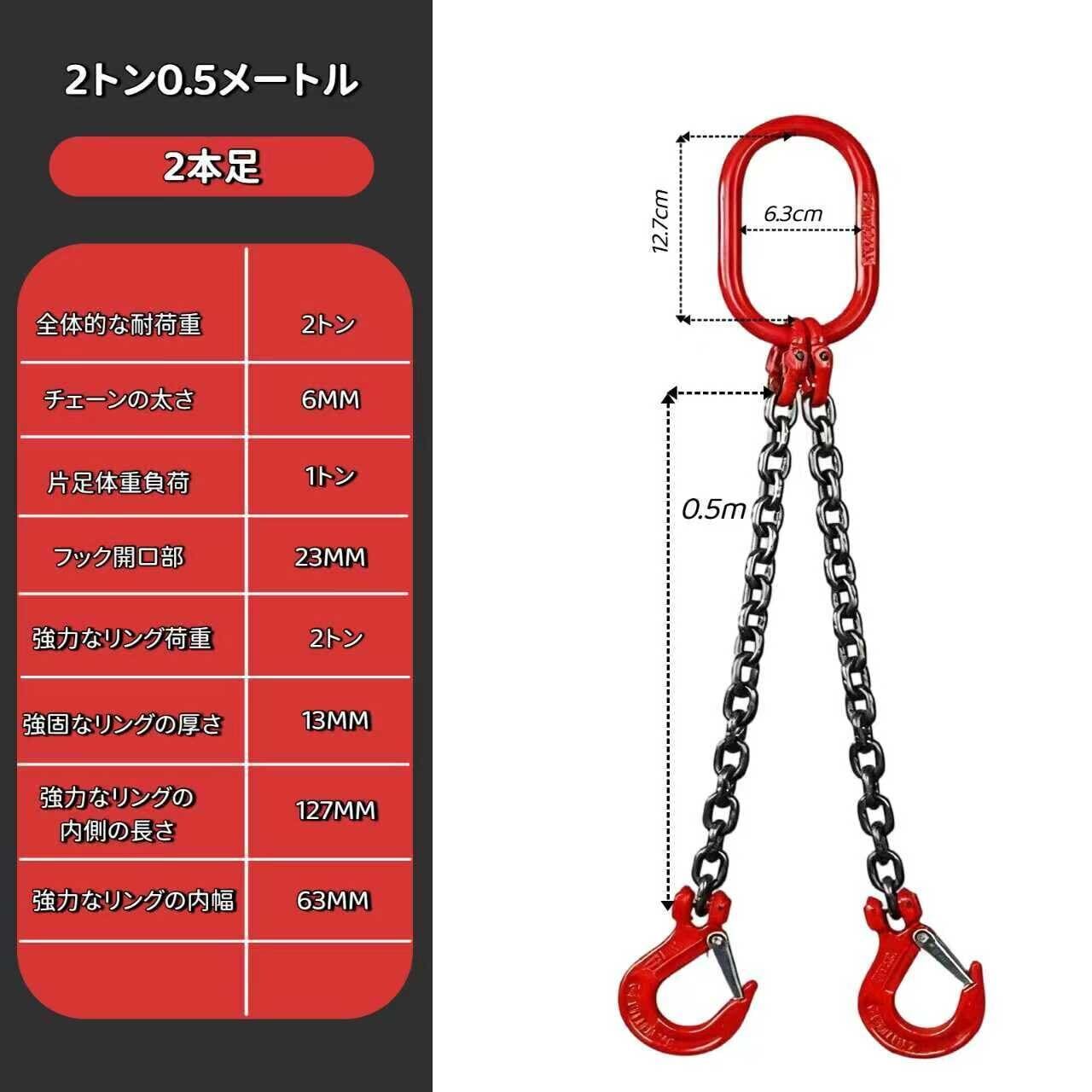 Hayexiha 2本/4本吊りワイヤーチェーンスリング 0.5mチェーンフック式(耐荷2t/チェーン径6mm)荷役用ハンギングチェーン・スリングベルト (チェーン0.5m/2トン脚【ダブルフック】)