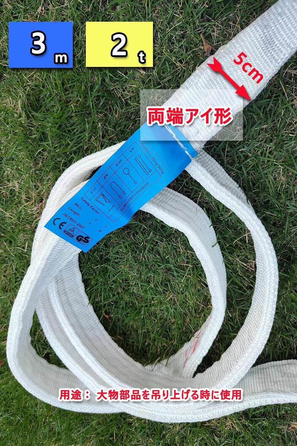スリングベルト2t 50mm 3m 2本セット両端アイ形 帯状の繊維スリング 使用荷重 200kg ベルトスリング 繊維ベルト 工具 出荷 引越し 仕事 効率化 【 2t 3m 2本セット】
