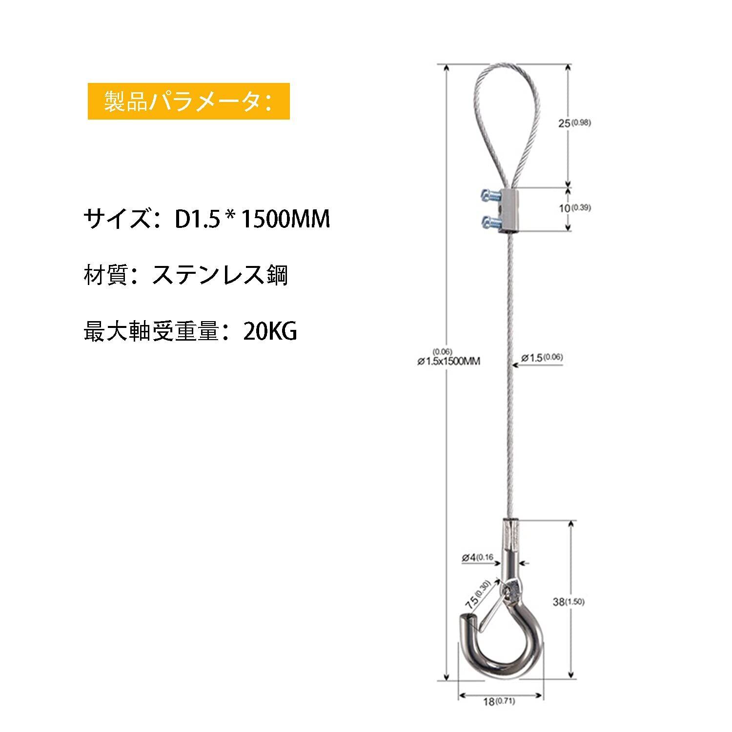 4本セット 落下防止ワイヤー フック付きスリング 調節可能なステンレスワイヤー ピクチャーレール ワイヤー 長さ150cm 直径1.5mm 耐荷重20kg ビルボードスリング サインスリング 固定安全ワイヤー シルバー
