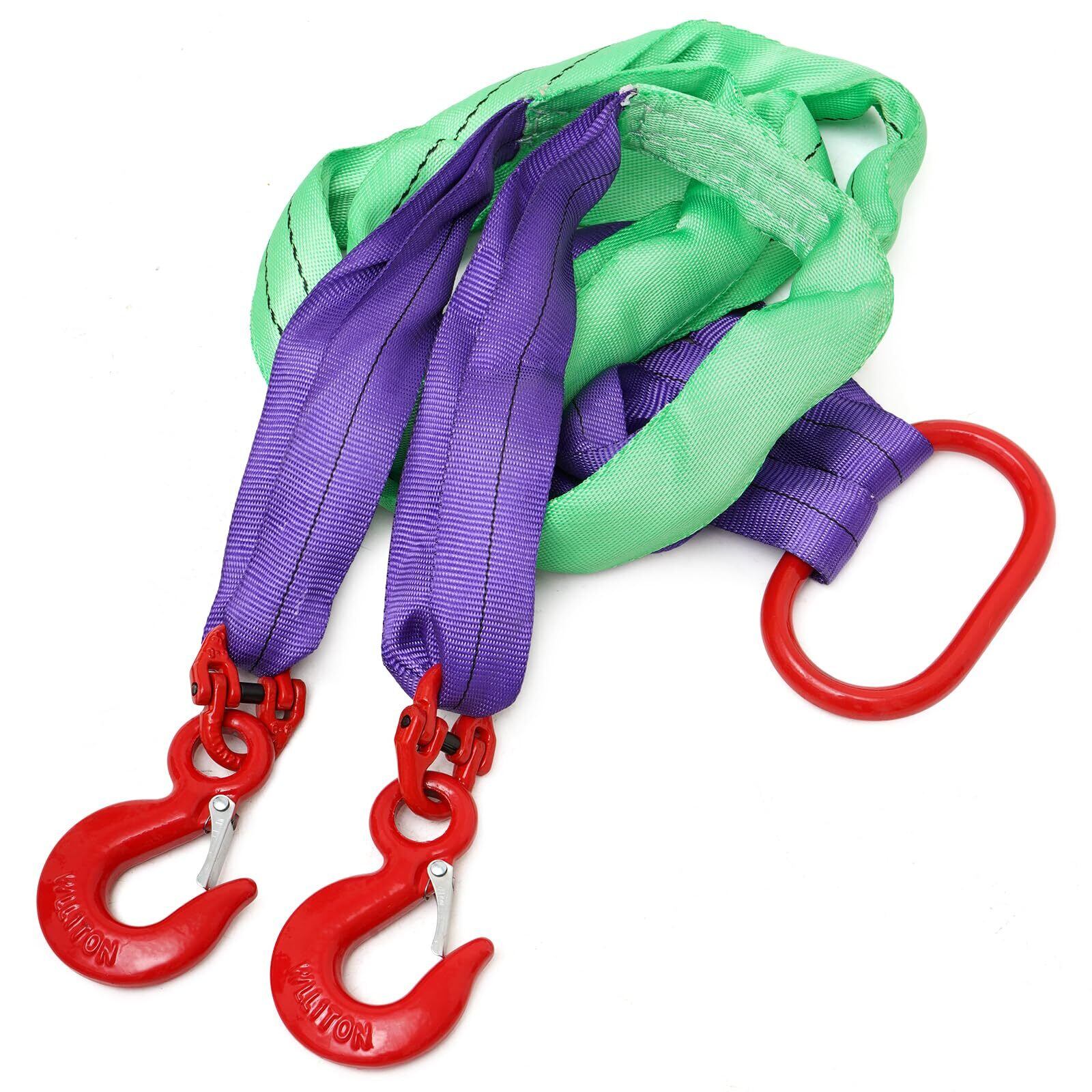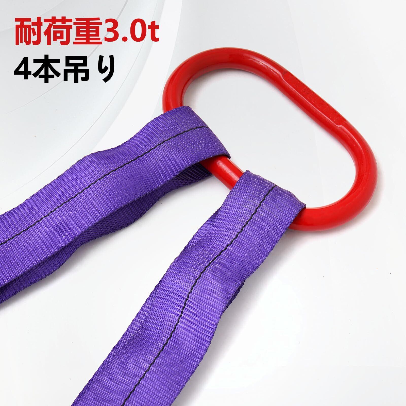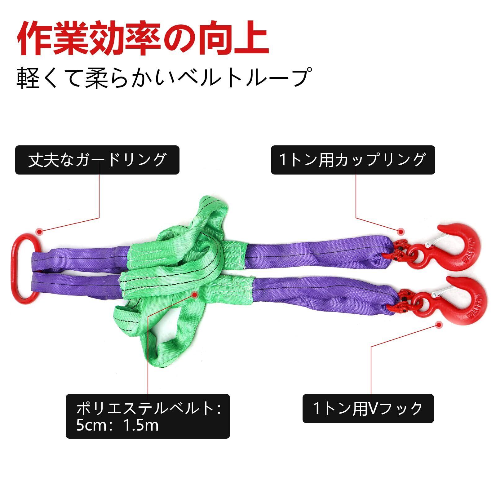 2本吊り ベルトスリング:素材:ポリエステル 合金鋼製 長さ:約1.5 m ベルト幅:約5 cm 2本吊りスリング使用荷重:約2 t 質量:約3 kg