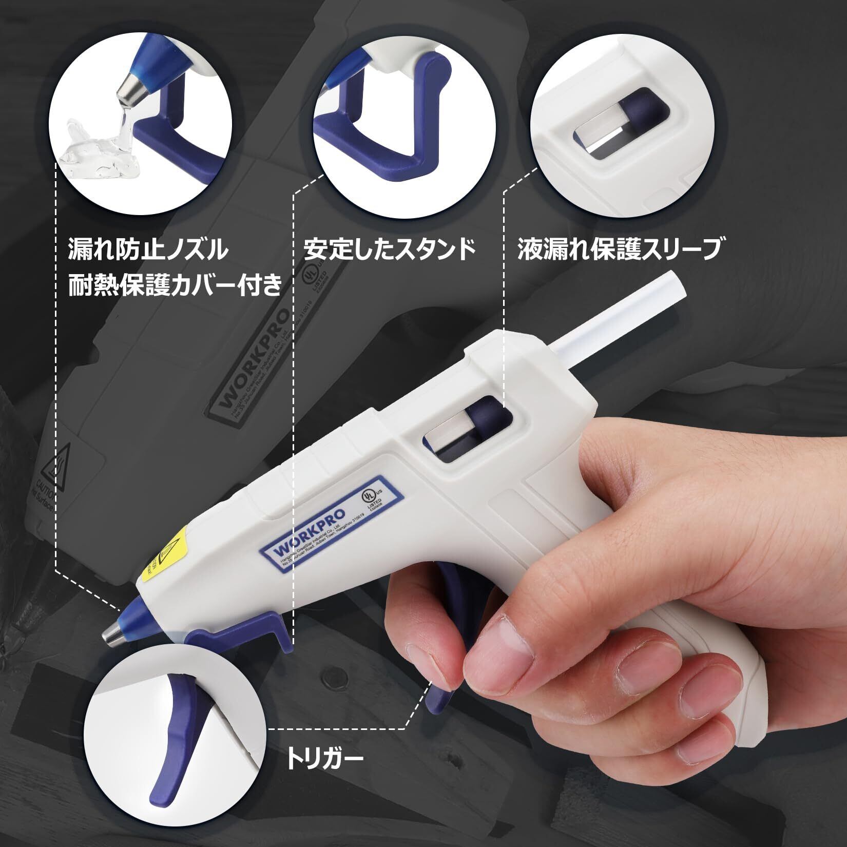 WORKPRO グルーガン ボンドガン 小型 100秒急速加熱 スティック20本付 軽量速乾 液漏れ・やけど防止 改良されたスタンド 強力粘着 補修 接着剤 DIY趣味 手芸 木工作業用